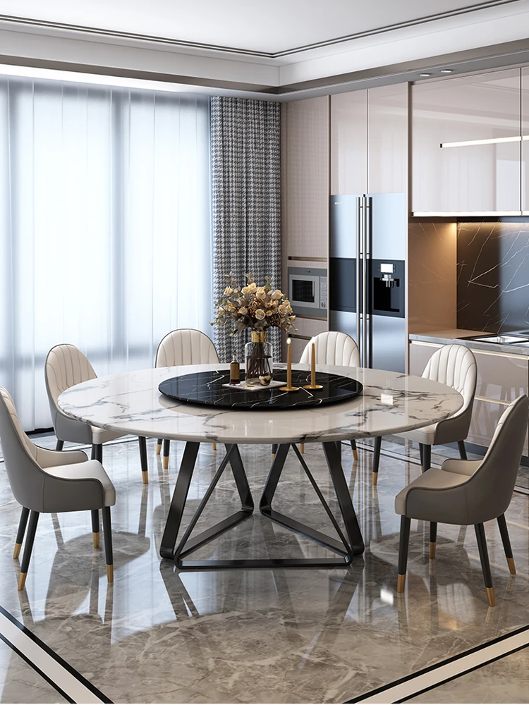 現代的シンプルなラウンドテーブル、ラグジュアリーな大理石デザイン!1.8メートルの円形ダイニングテーブルとチェアのセット。ホテルやレストランにも最適なスタイルで、おしゃれな食卓を演出します!