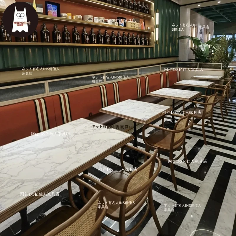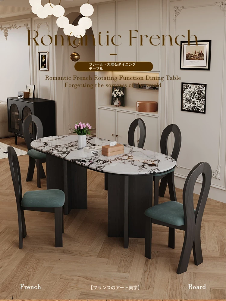 フレンチヴィンテージ風ブルガリ大理石レトロダイニングテーブル 小型向け 高級感あふれる無垢材 長方形ダイニングテーブル&チェア 2025年新作