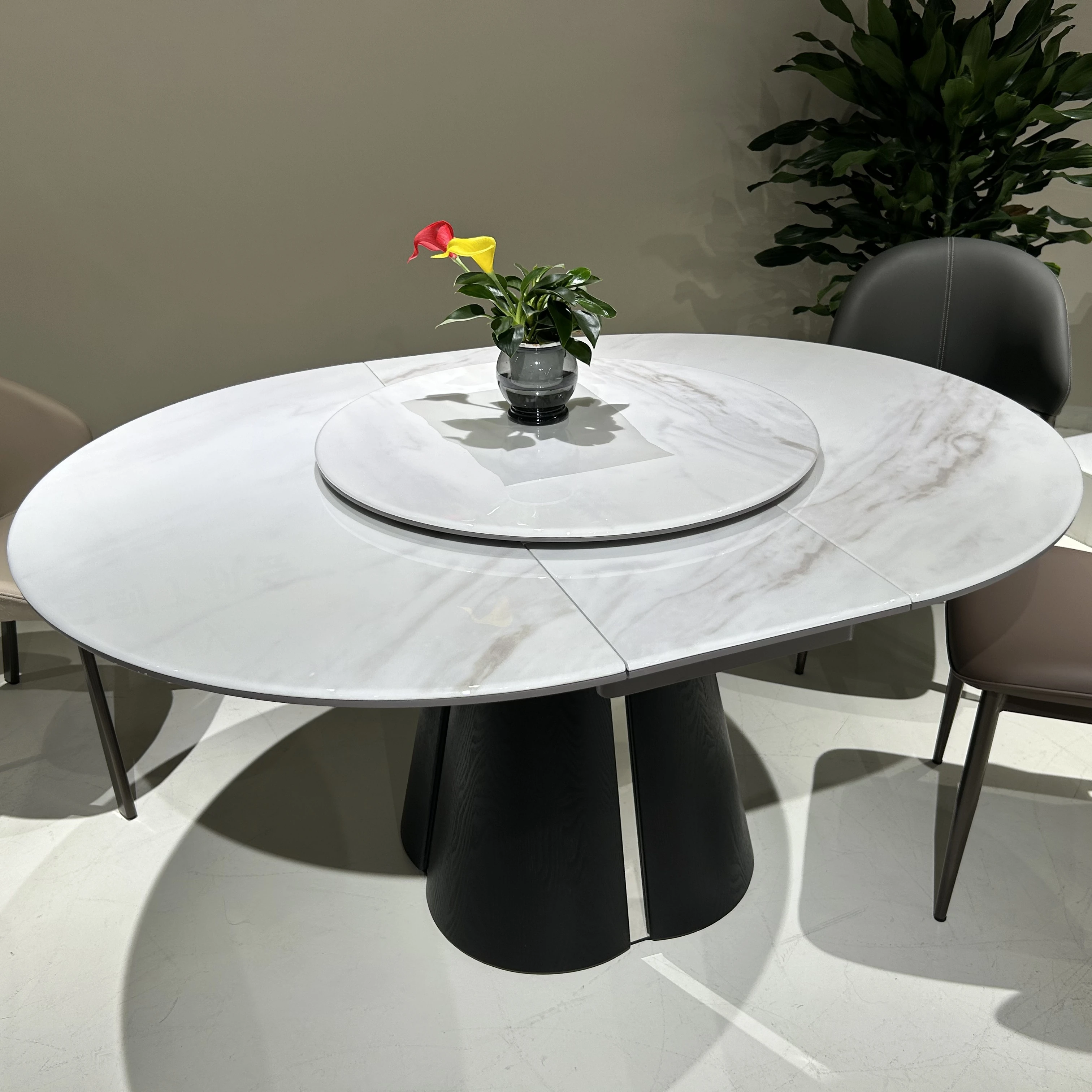 CZ061機能性ラウンドテーブル 1.2メートル マイクロクリスタリンストーン製ラウンドダイニングテーブル 1.55メートル オーバルテーブル 伸縮機能付き 回転プレート付き - おしゃれで使い勝手抜群のダイニングテーブル!