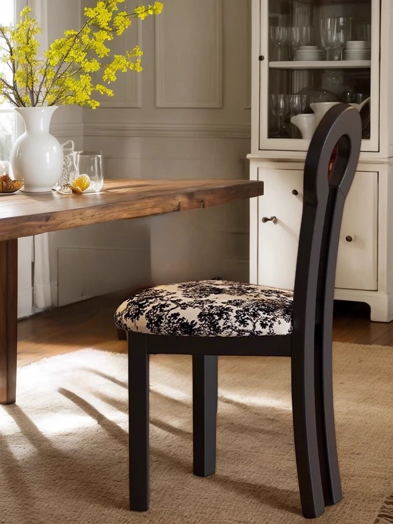 フランス風ダイニングチェア 家庭用 本格的な木製 背もたれ付き 2025年新作 アンティークスタイル シンプルでリラックスできる 小型住宅に最適 人気のオーナーチェア