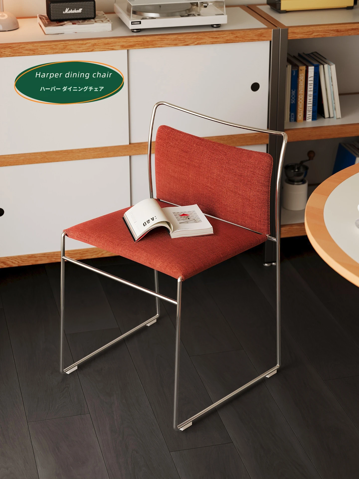 イタリアンスタイルの家庭用ダイニングチェア、ミニマルデザインで小スペースに最適!スタッキング可能で、バウハウス風のレトロなソフトパッキングチェア。おしゃれな化粧椅子としても活用できます。