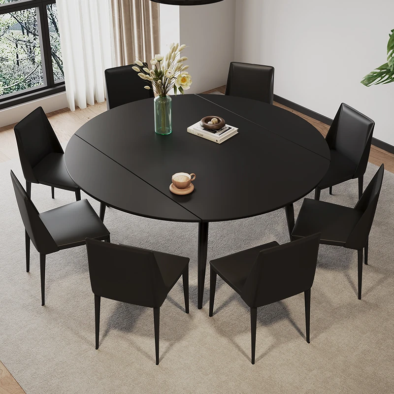 2024 New Minimalist Italian-Style Black Expandable Dining Table Set - Versatile Round and Square Design for Small Living Spaces