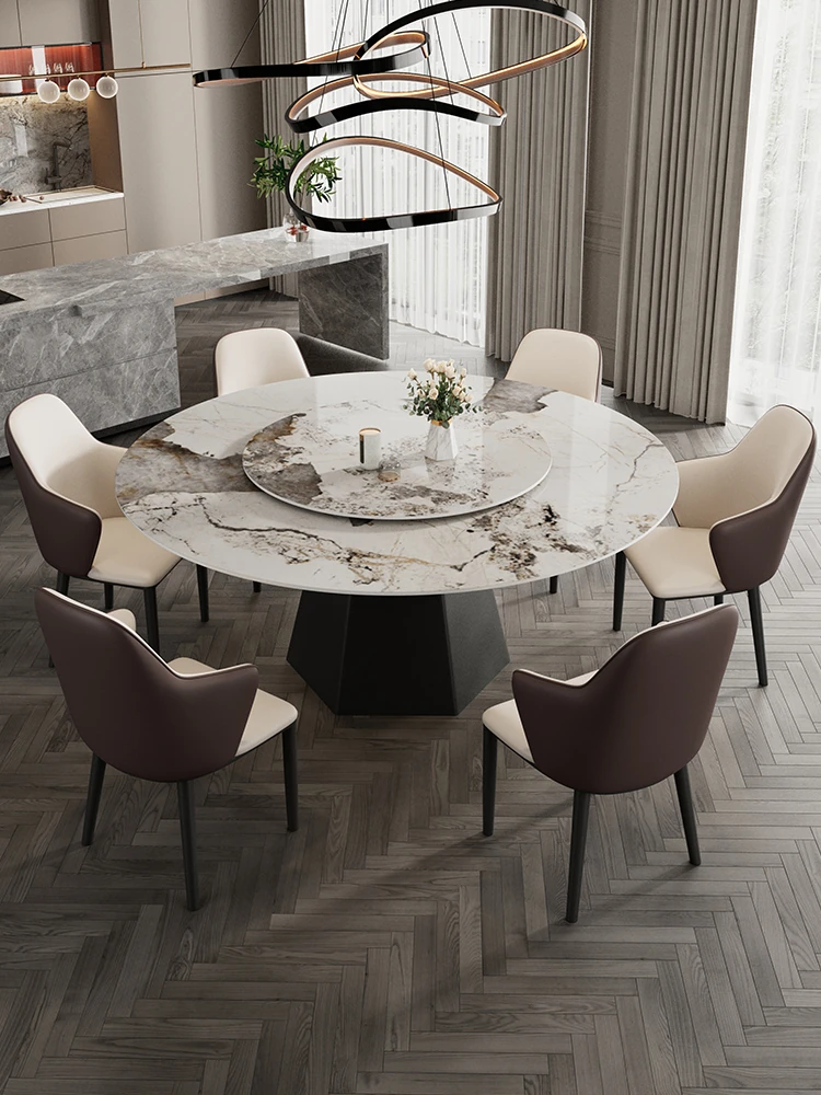 Italian Luxury Marble Dining Table and Chair Set with Rotating Base - Elegant 1.8m and 2m Round Table for Home, Villa, and Hotel Use. Perfect for Sophisticated Dining Experiences!