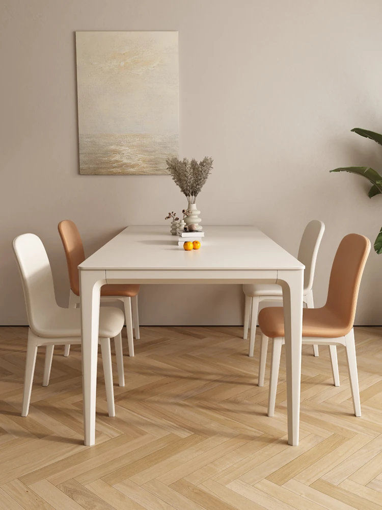 Modern Minimalist Cream Dining Table Set - White Solid Wood Rectangular Table with Chairs for Small Spaces, Perfect for Home Use