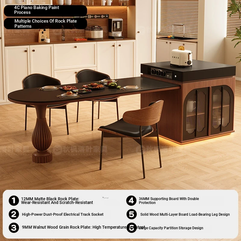 Expandable French-Style Half-Round Dining Table with Storage – Premium Multi-Functional Island Table for Contemporary Kitchens and Dining Rooms