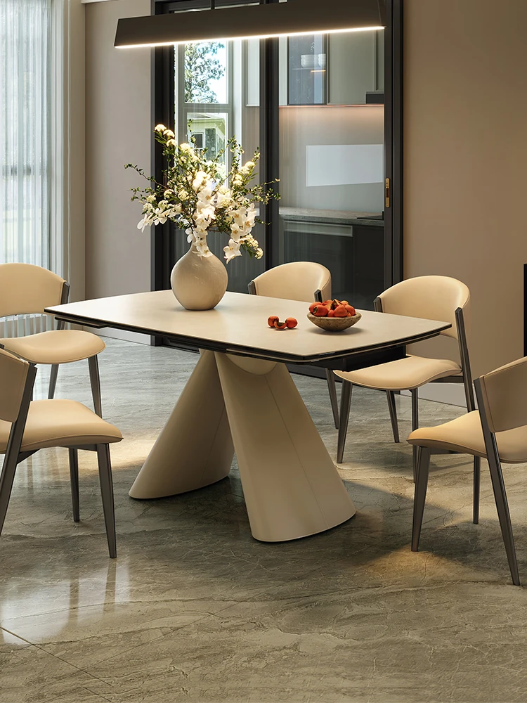 2025 New Italian Minimalist Expandable Carbon Steel High-End Italian Imported Calacatta Marble Dining Table and Chair Set