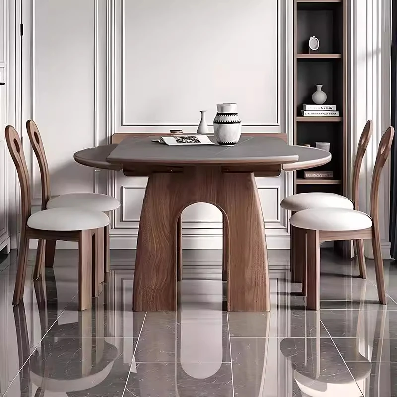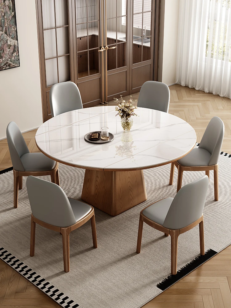 Premium Solid Wood Round Dining Table and Chair Set with High-Quality Rock Slab - Multi-functional Modern Minimalist Design for Small Spaces