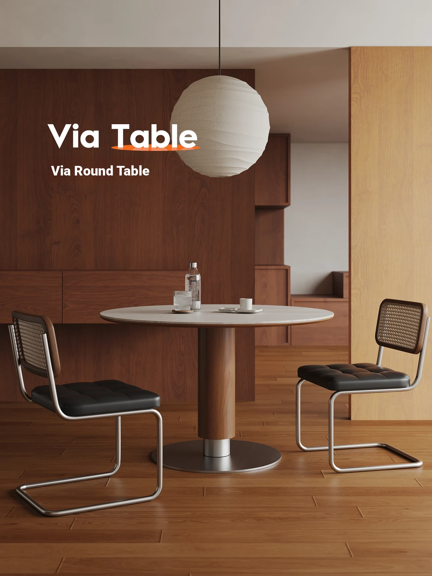 Auloma Via Round Table - Vintage Style Natural Stone Dining Table for Small Spaces, Designer Circular Table for Home Use