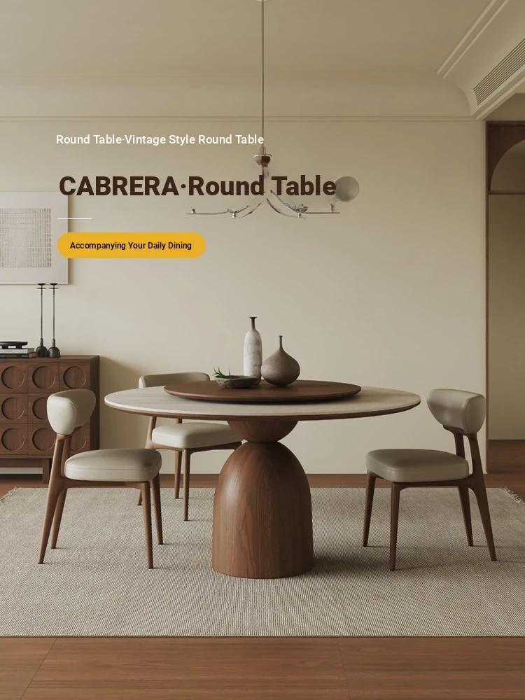 French Vintage Style Rock Slab Dining Table - Expandable Round Table for Home Use, Versatile Solid Wood Design for Dining and Living Room, Perfect for Family Meals and Gatherings