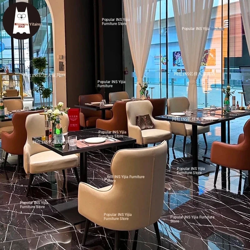 Trendy Marble Table and Chair Set for Coffee Shops and Dessert Bars - Elegant Solid Wood Square Table for French Restaurants and Cozy Pubs. Perfect for a Stylish Dining Experience!