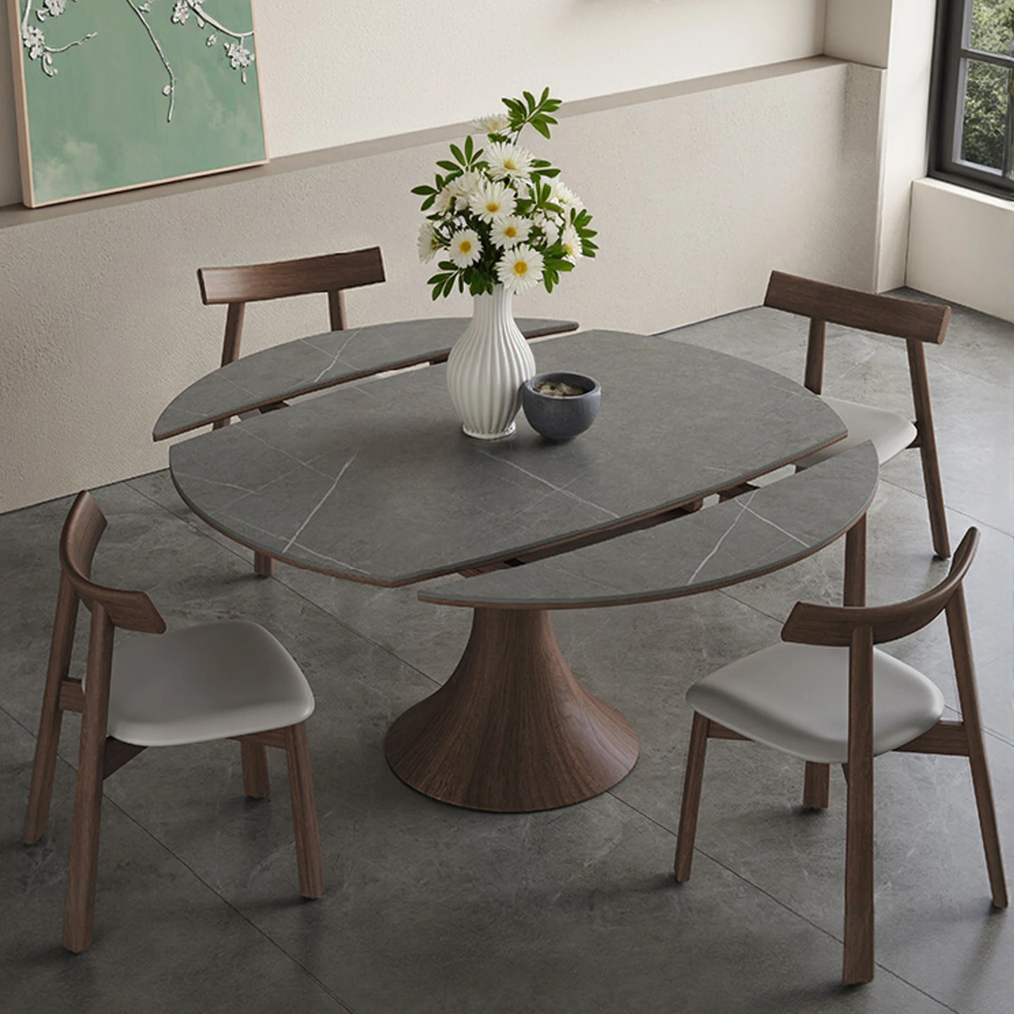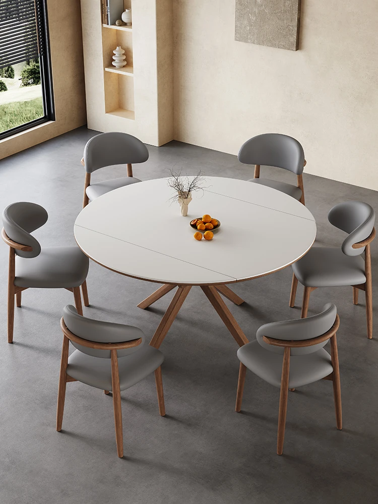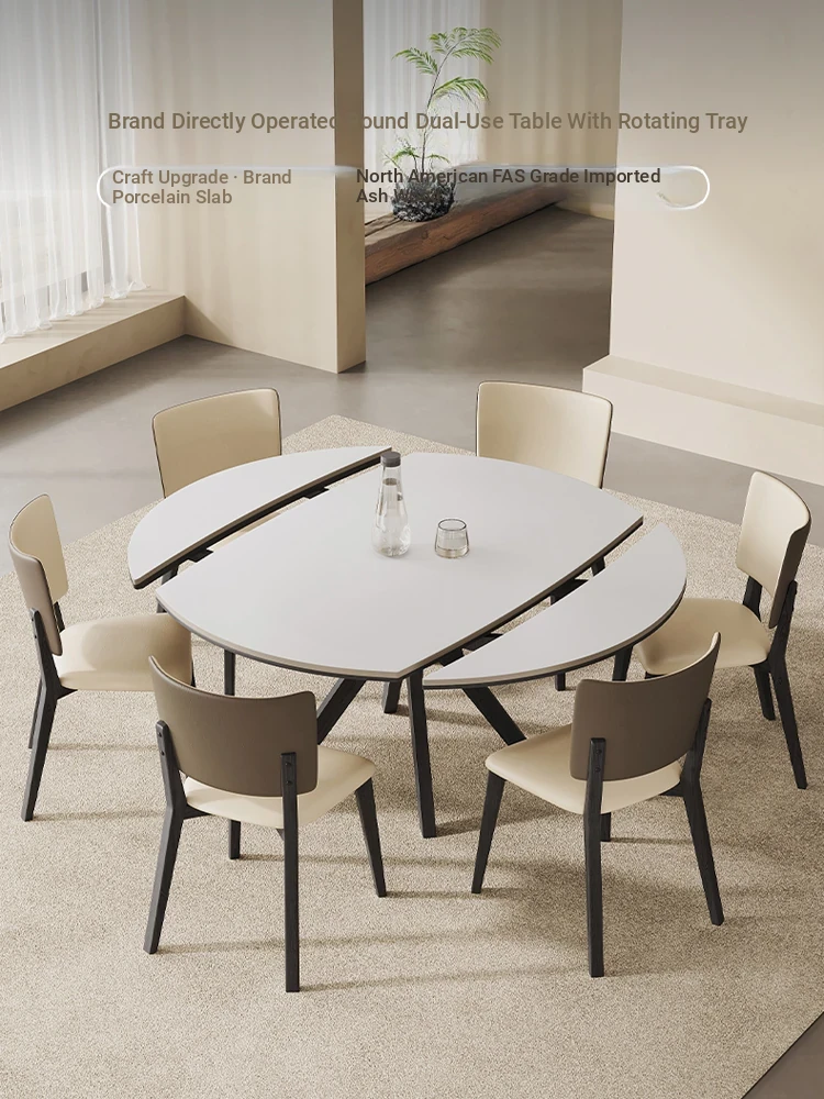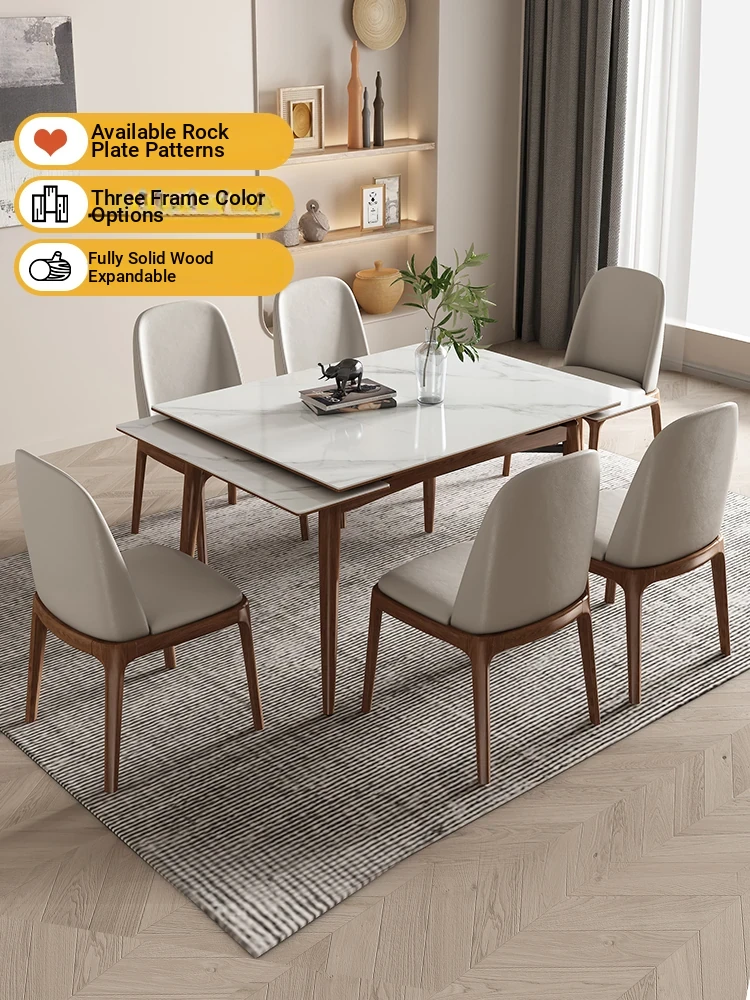 Folding Solid Wood Dining Table with Rock Slab - Modern Minimalist Design for Small Spaces, Versatile Round/Square Shape, Expandable Luxury Dining Set with Chairs for Your Home