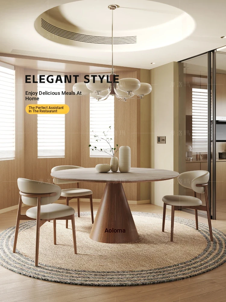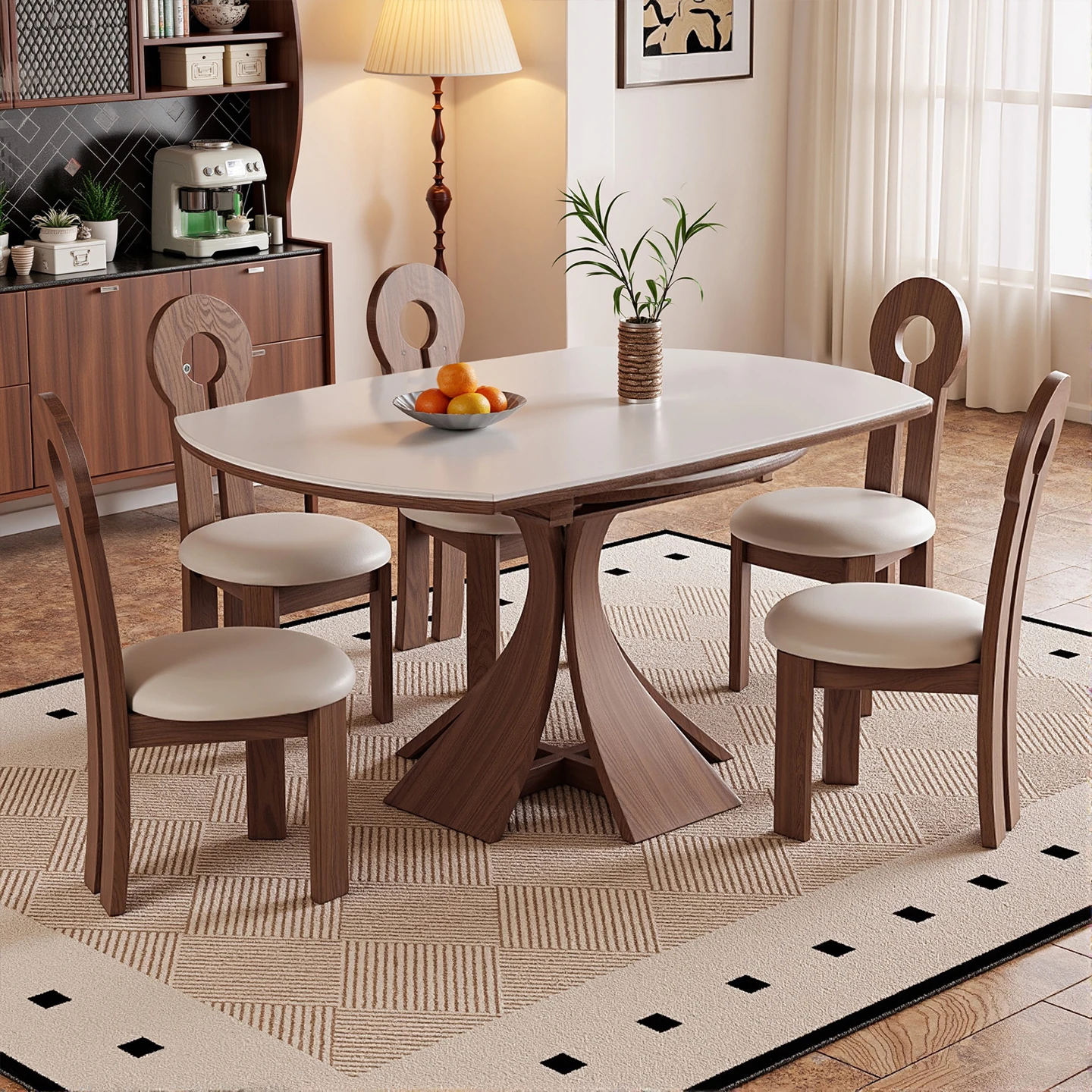 High-End Solid Wood Rock Board Dining Table and Chair Set - Vintage Style, Compact Design for Small Spaces, Extendable and Foldable Round Table for Home Use