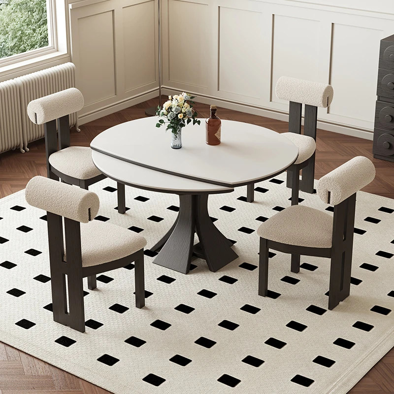 Versatile Solid Wood Rock Plate Expandable Dining Table for Small Spaces - French Vintage Style, Round and Square Convertible Design for Cozy Meals