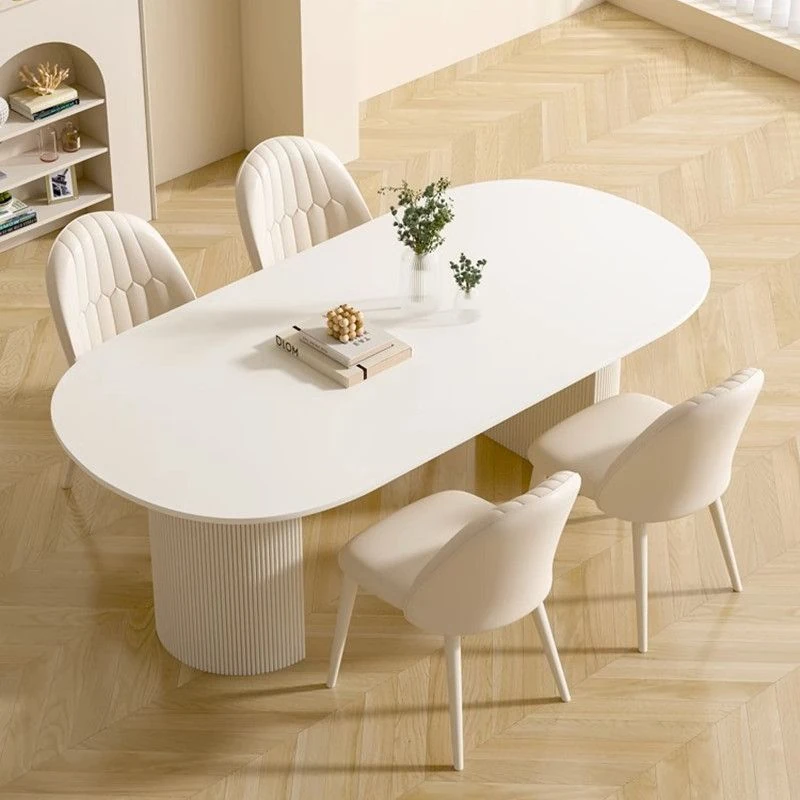Elegant Cream White Rock Slab Dining Table Set - Modern Minimalist Oval Design for Small Spaces, Perfect for Home Decor and Stylish Dining Experiences