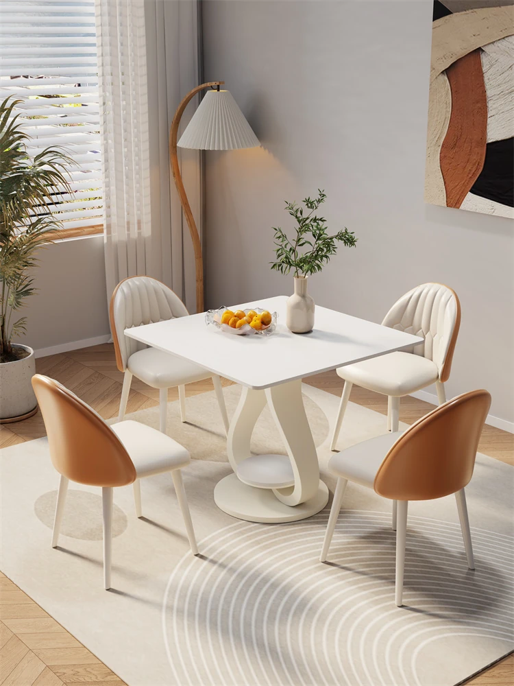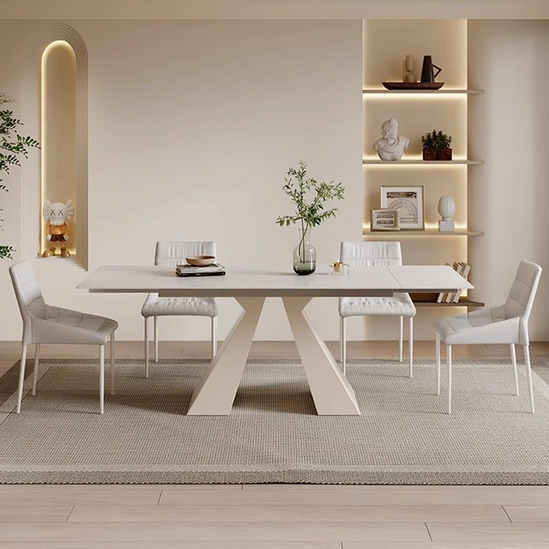 Creamy Wind Stretchable Rock Plate Dining Table - Modern Minimalist Rectangular Folding Table for Small Spaces, Perfect for Home Use.