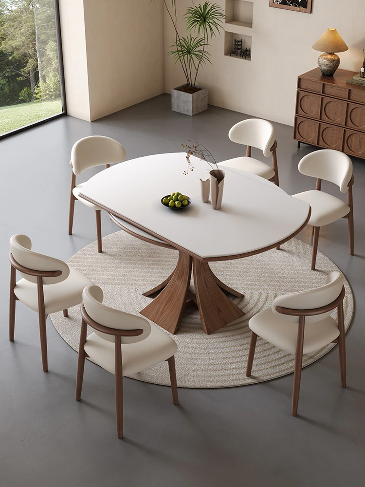 2024 New Designer Nordic Extendable Dining Table with Central Jump Platform – Italian Minimalist Dining Table and Chair Set