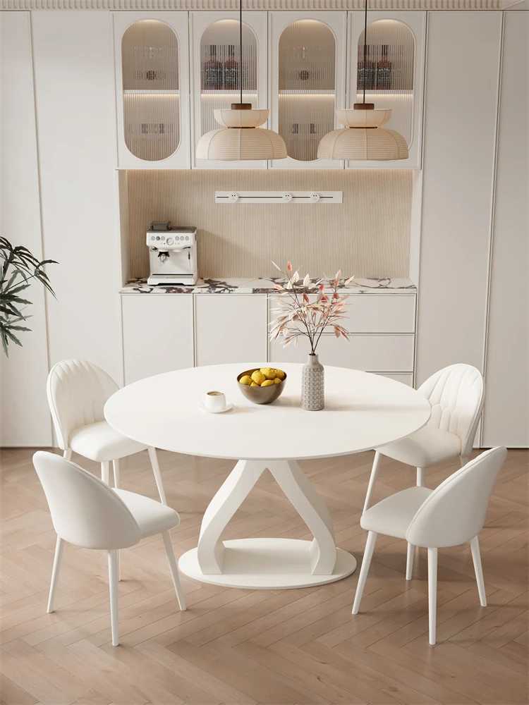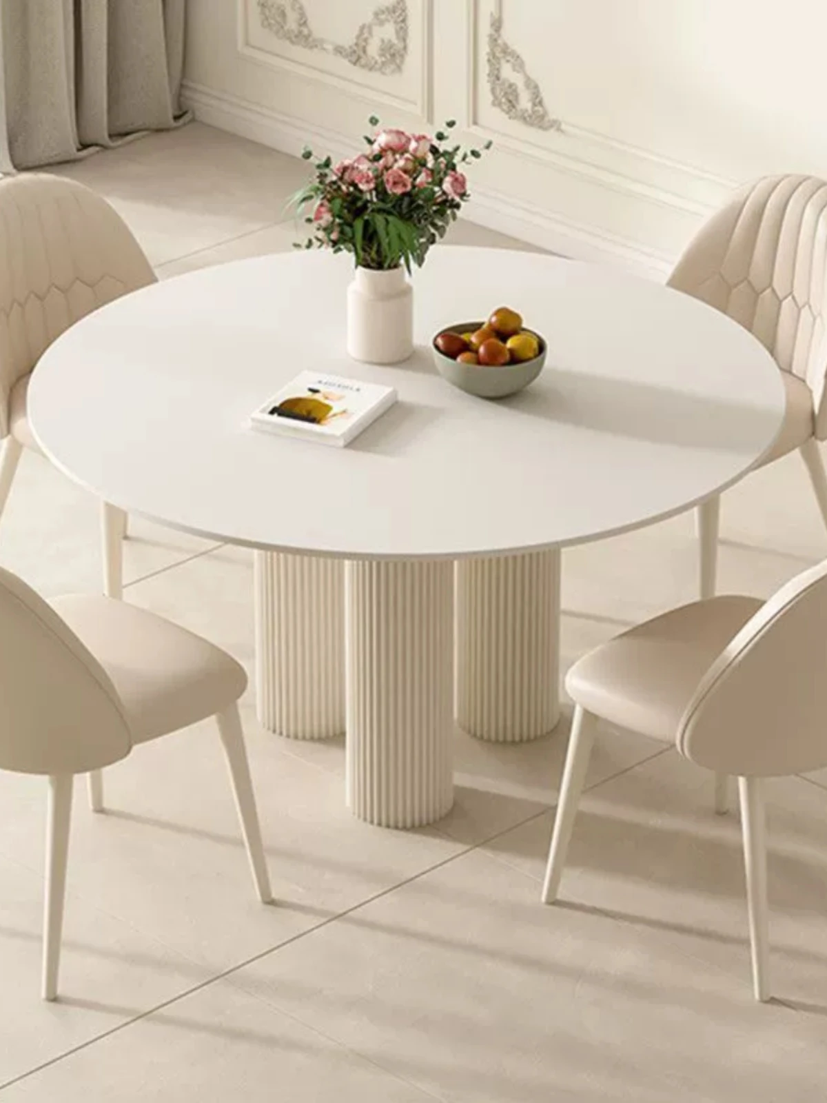 Elegant Creamy Round Dining Table - Modern Minimalist Pure White French Style, Perfect for Small Homes and Trendy Interiors