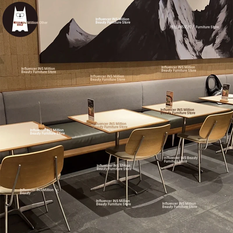Solid Wood Rock Board Dining Table and Chair Set - Stylish Square Marble Table for Western Restaurants, Coffee Shops, Japanese Cuisine, Pubs, and Bars. Perfect for Creating a Cozy Dining Experience!
