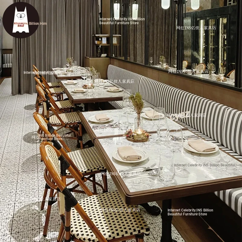 Solid Wood Marble French Dining Table for Western Restaurants - Elegant Square Table Set for Coffee Shops, Dessert Bars, and Lounges