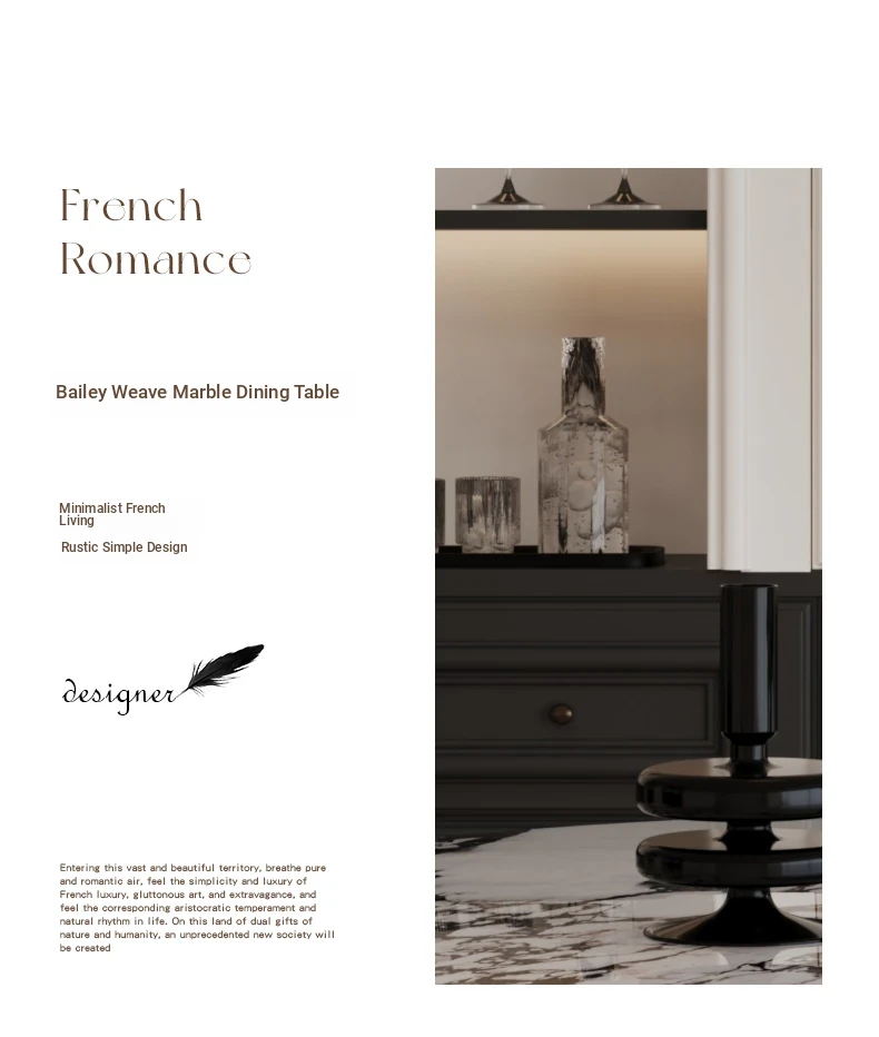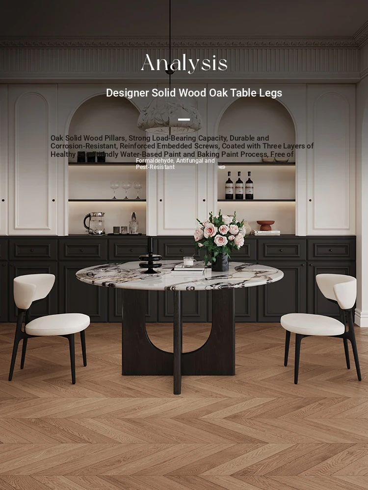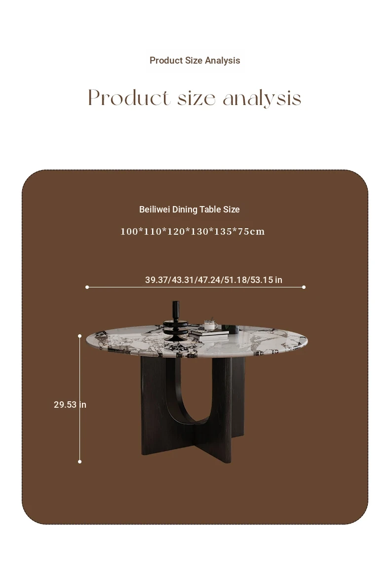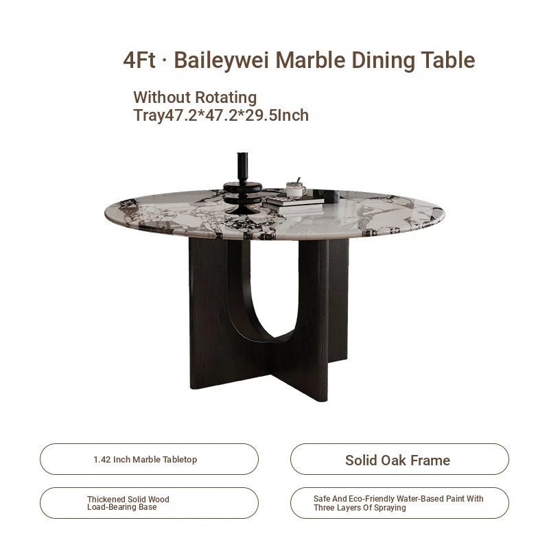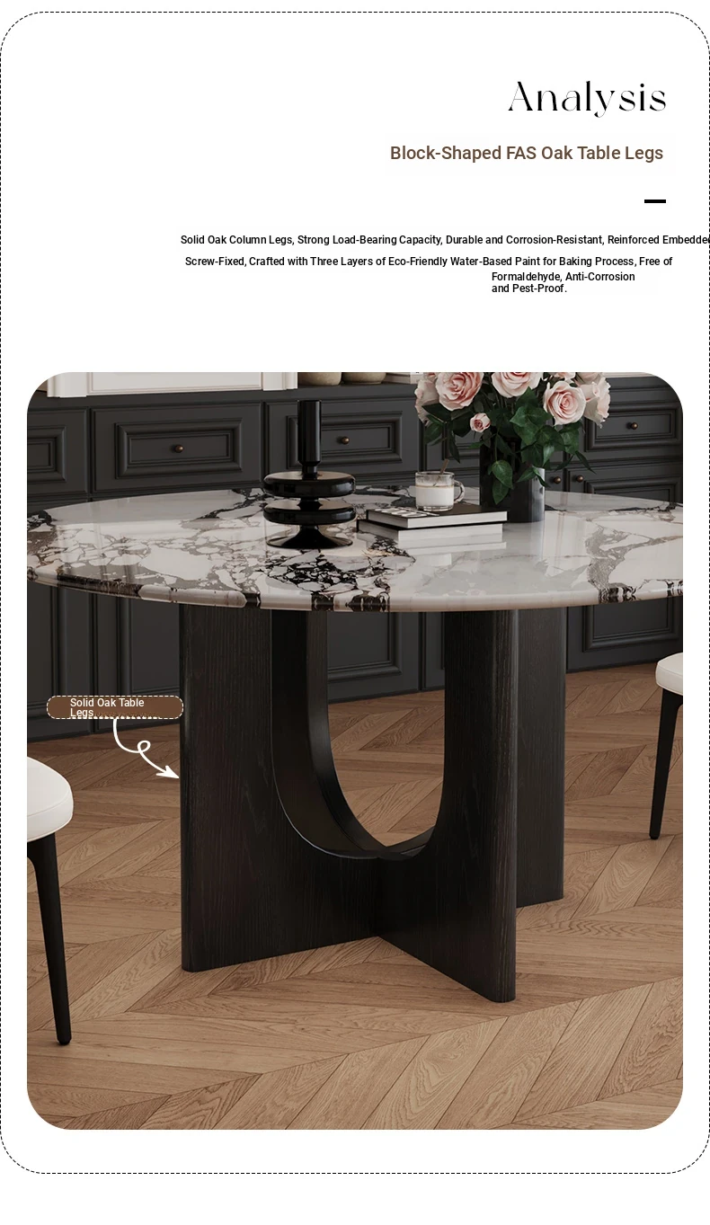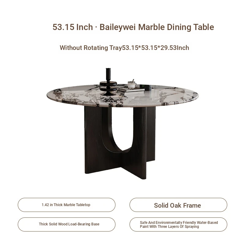 2025 New Vintage French Solid Wood Round Dining Table with Luxury Bulgari Marble - Elegant Home Dining Table Set