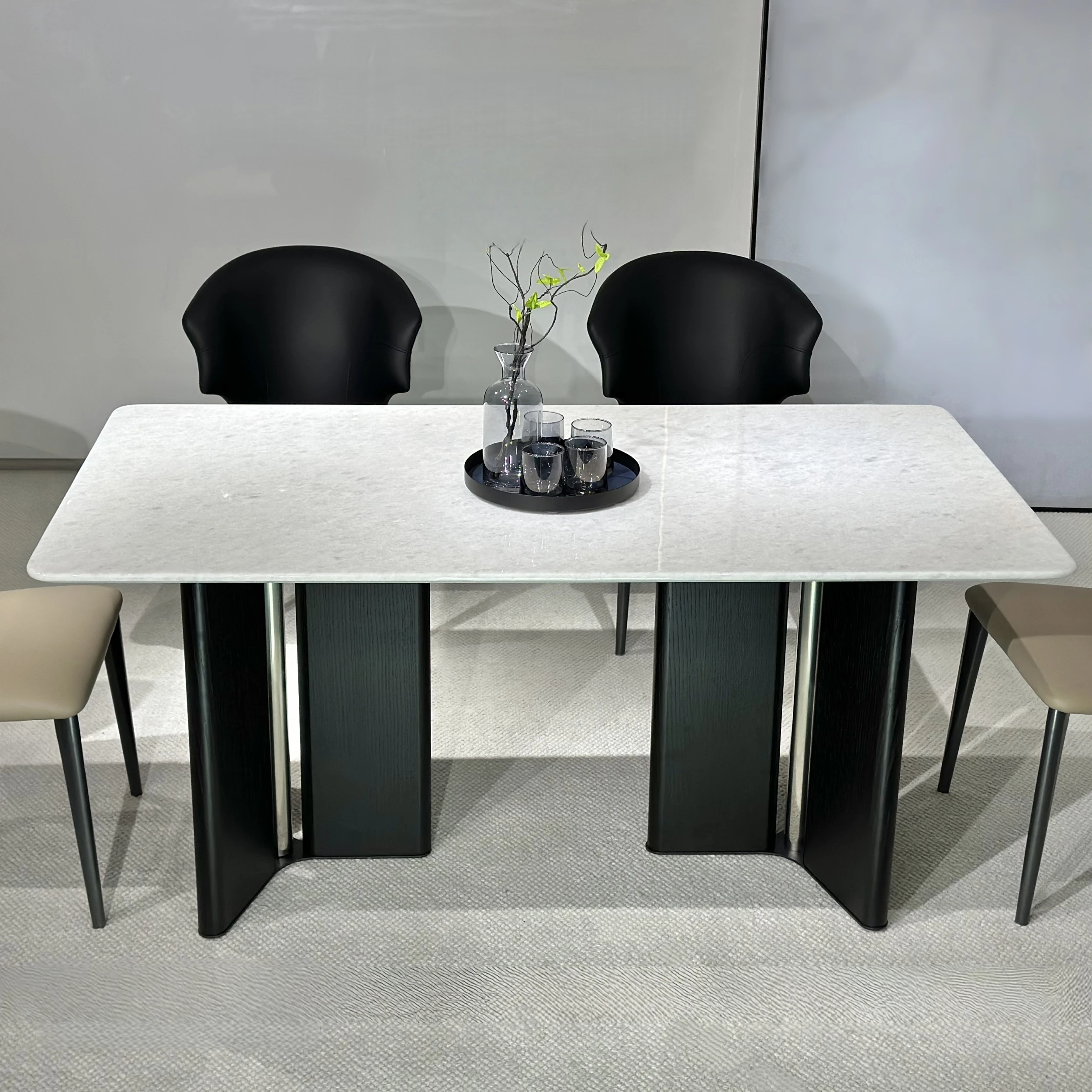 CZ196 Premium Natural Marble Long Dining Table - 1.6m / 1.8m Diamond White Luxury Thick Marble Dining Console, Perfect for Elegant Dining Experiences