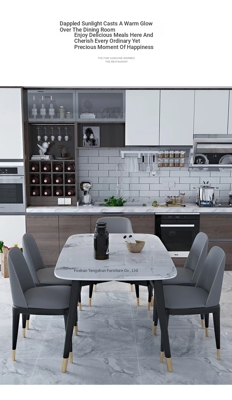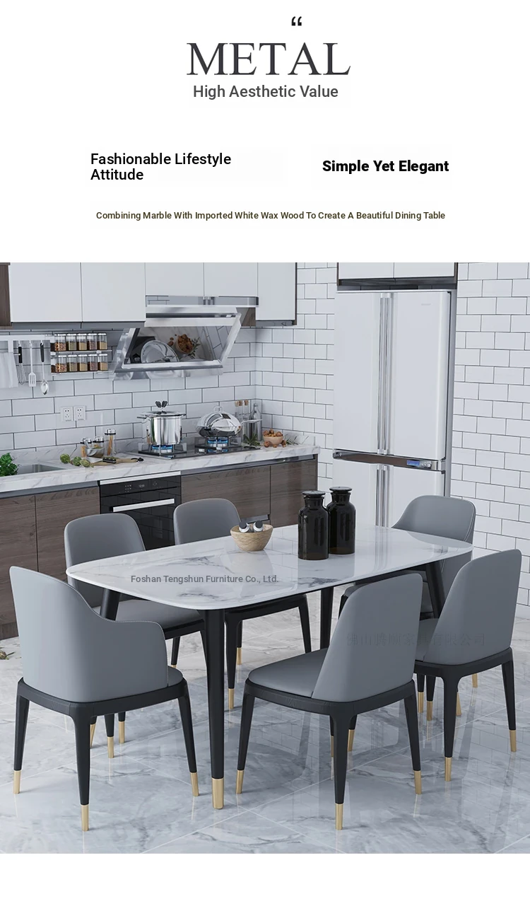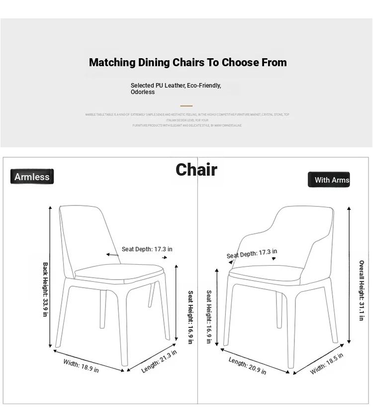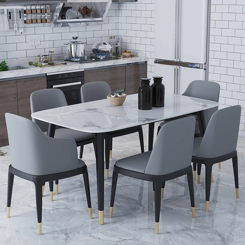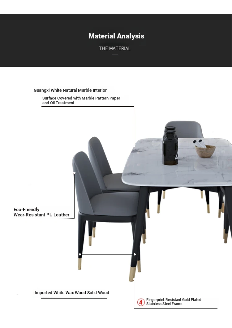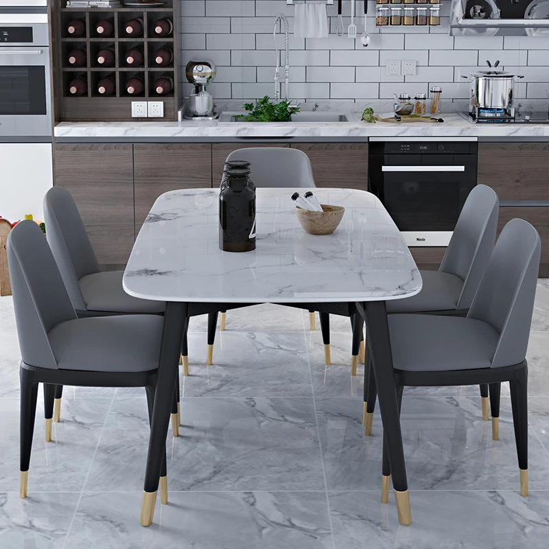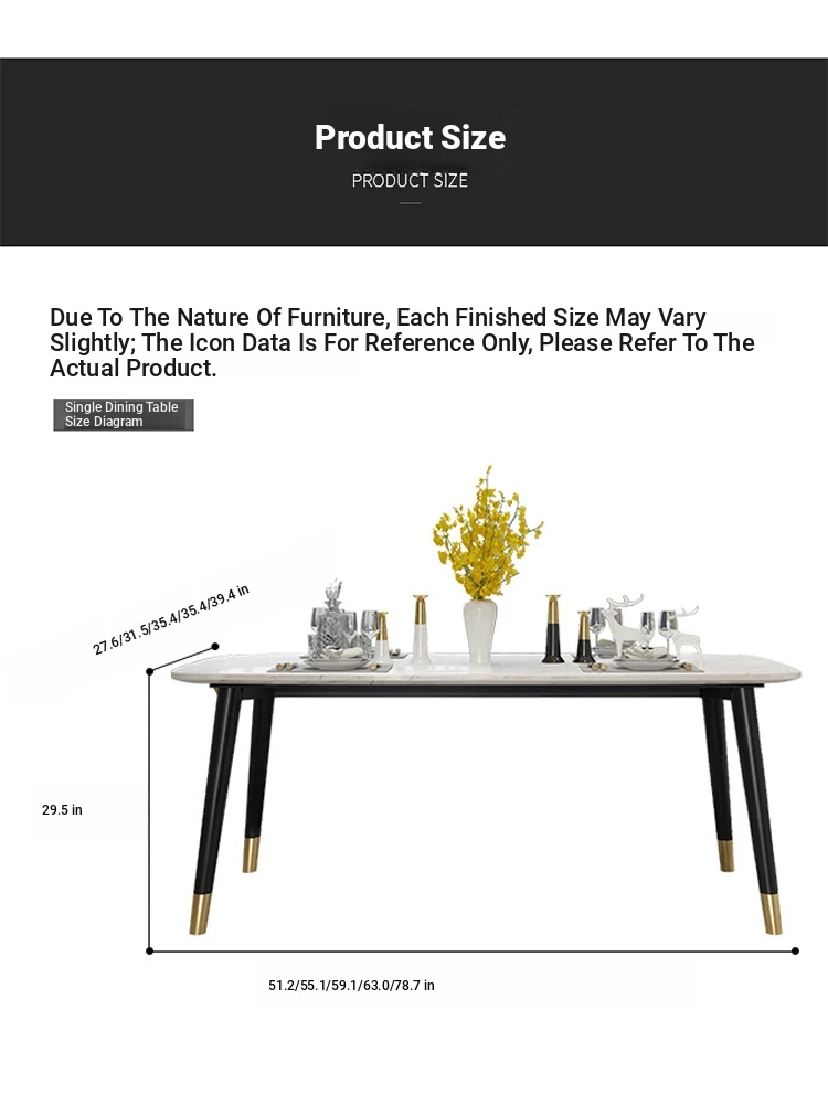 Rectangular Luxury Marble Dining Table Set - Modern Minimalist Solid Wood Furniture for Small Spaces, Perfect for Home Dining