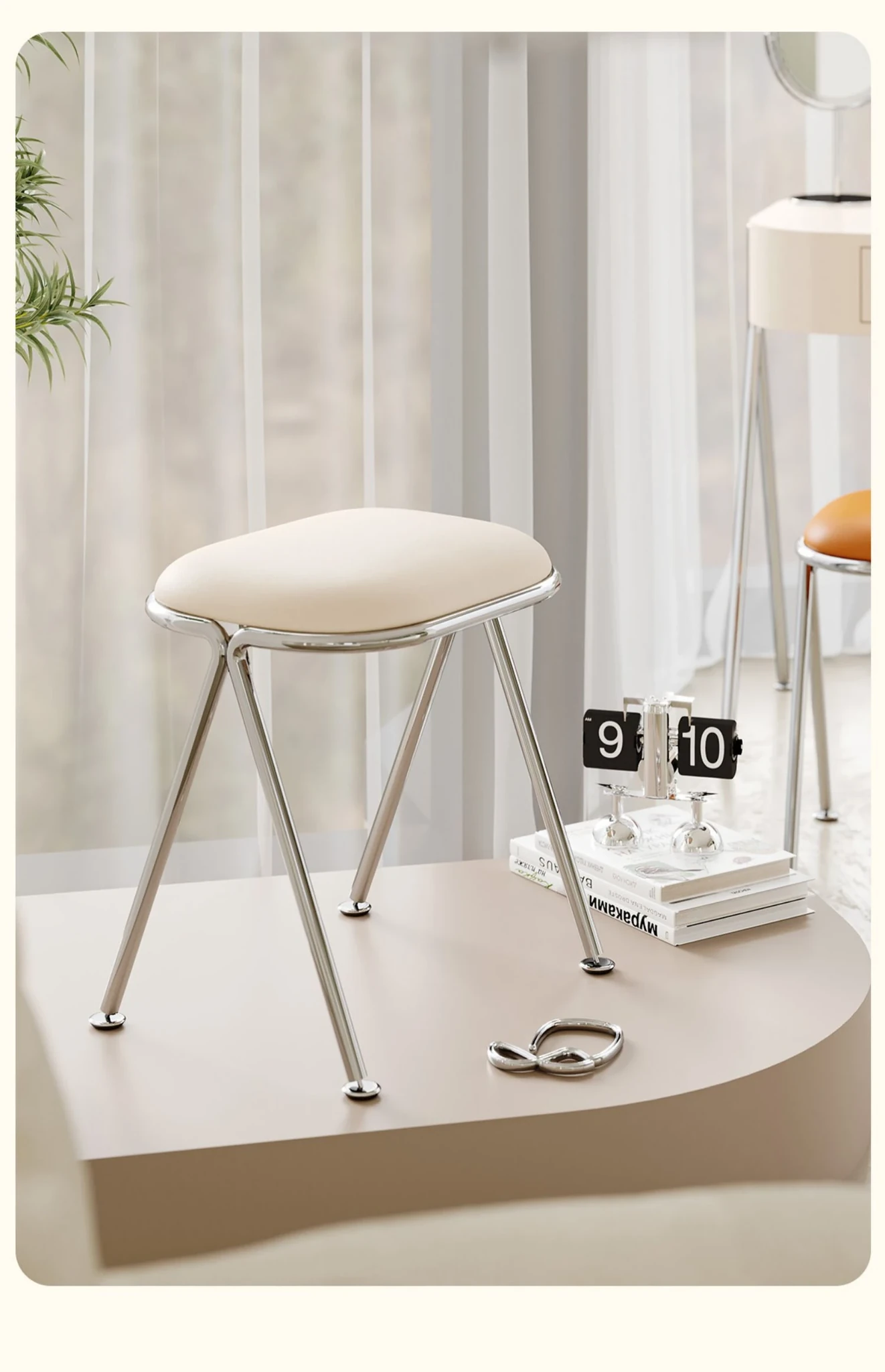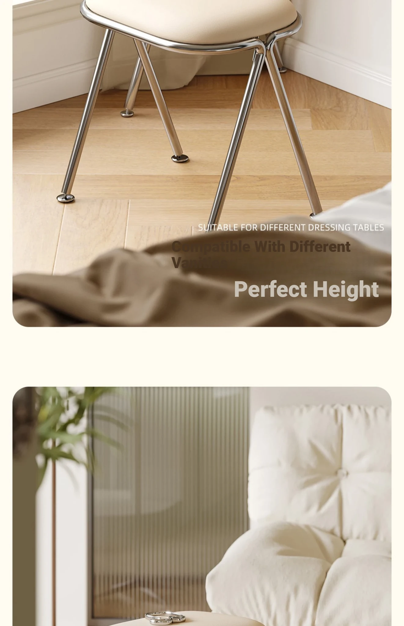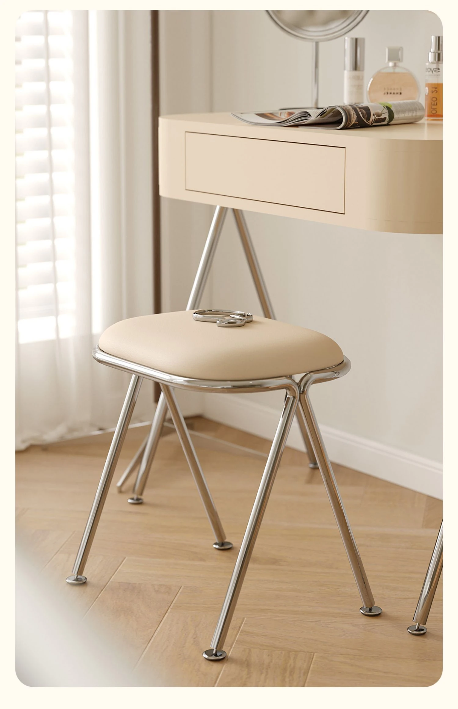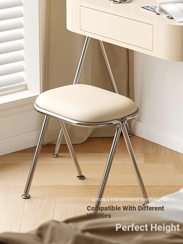 Scandinavian Minimalist Makeup Stool - Modern Chic Designer Chair for Bedroom Vanity, Stylish Soft-Padded Seat, Perfect for Influencers and Trendsetters