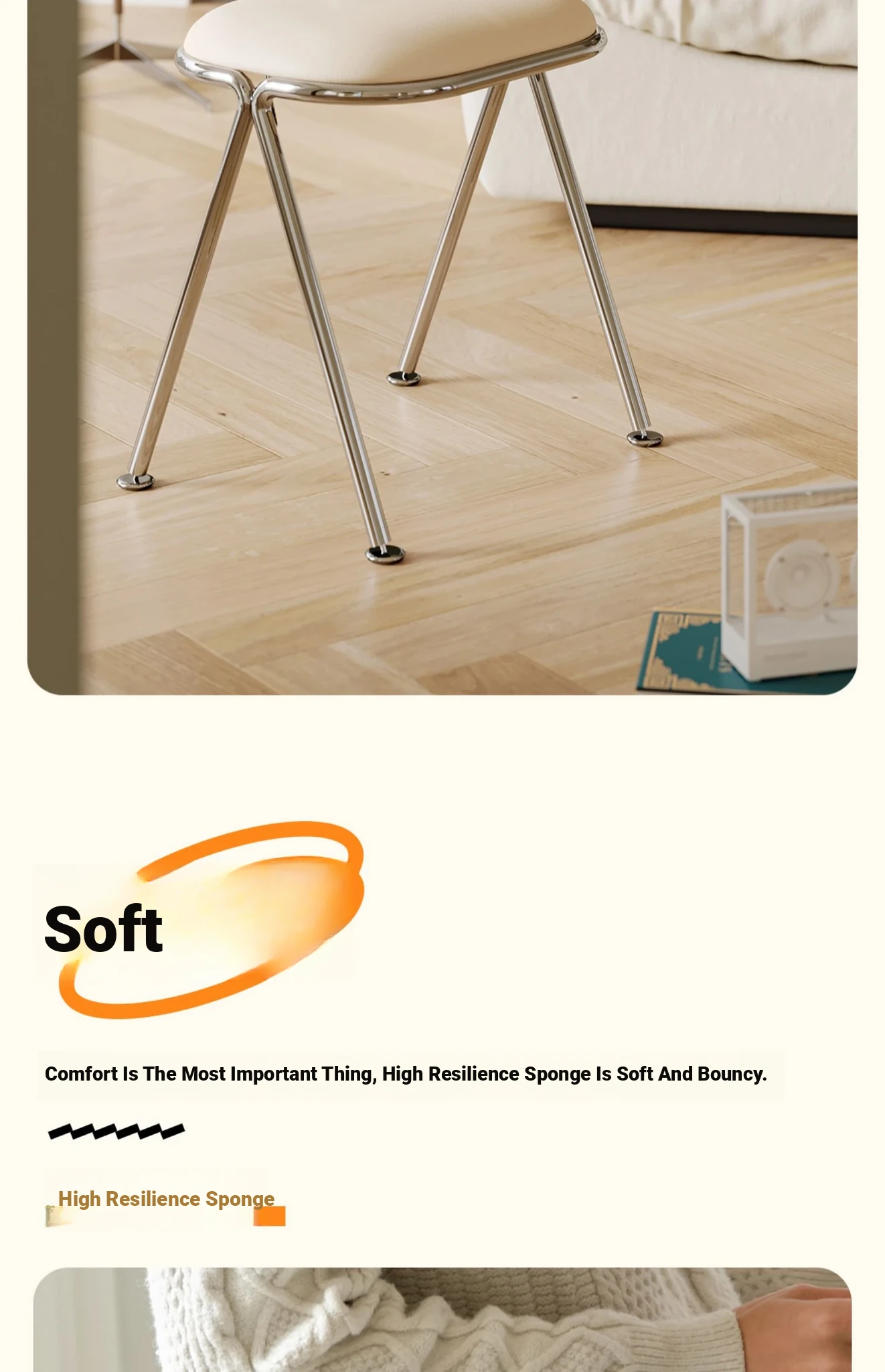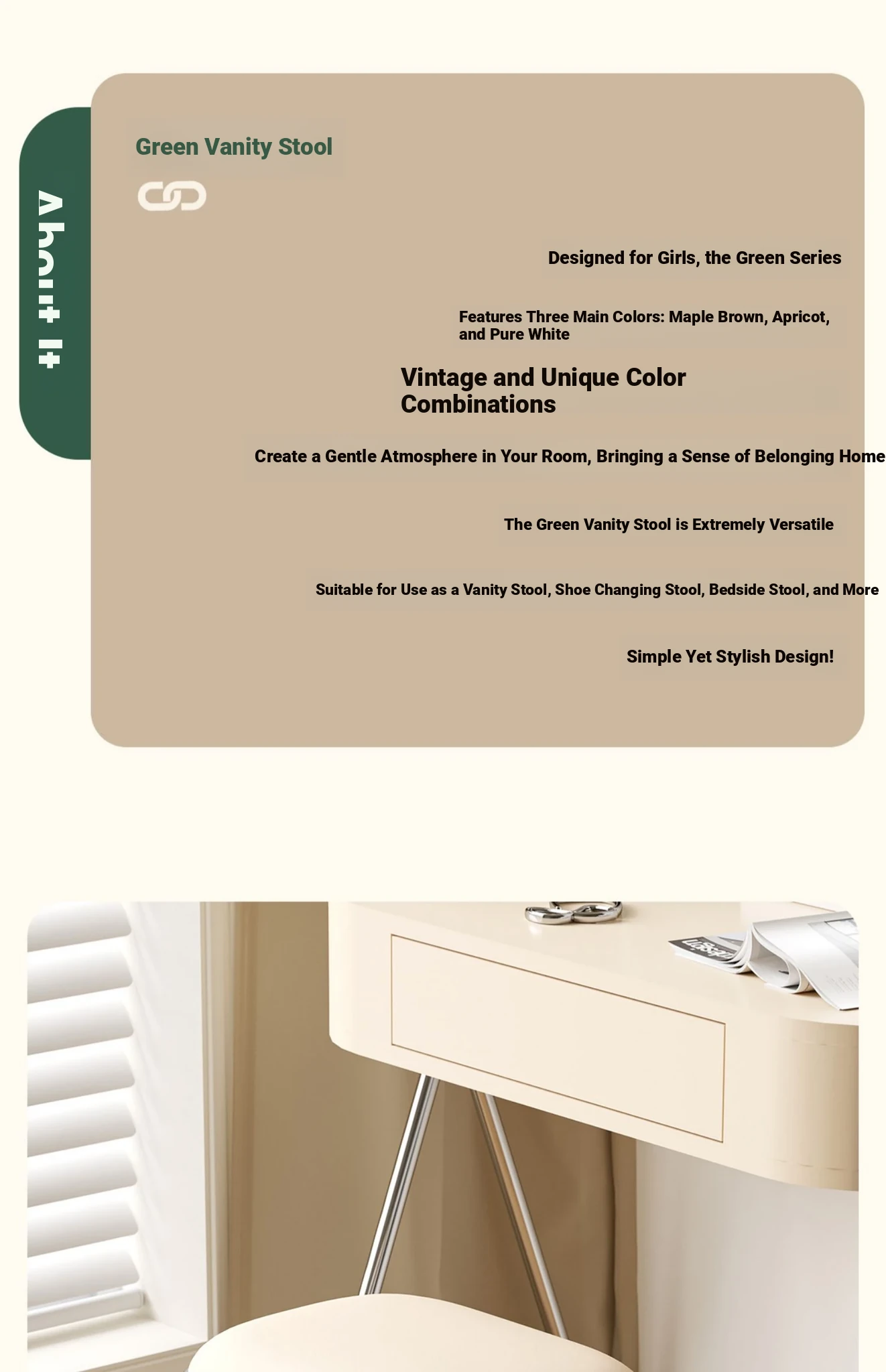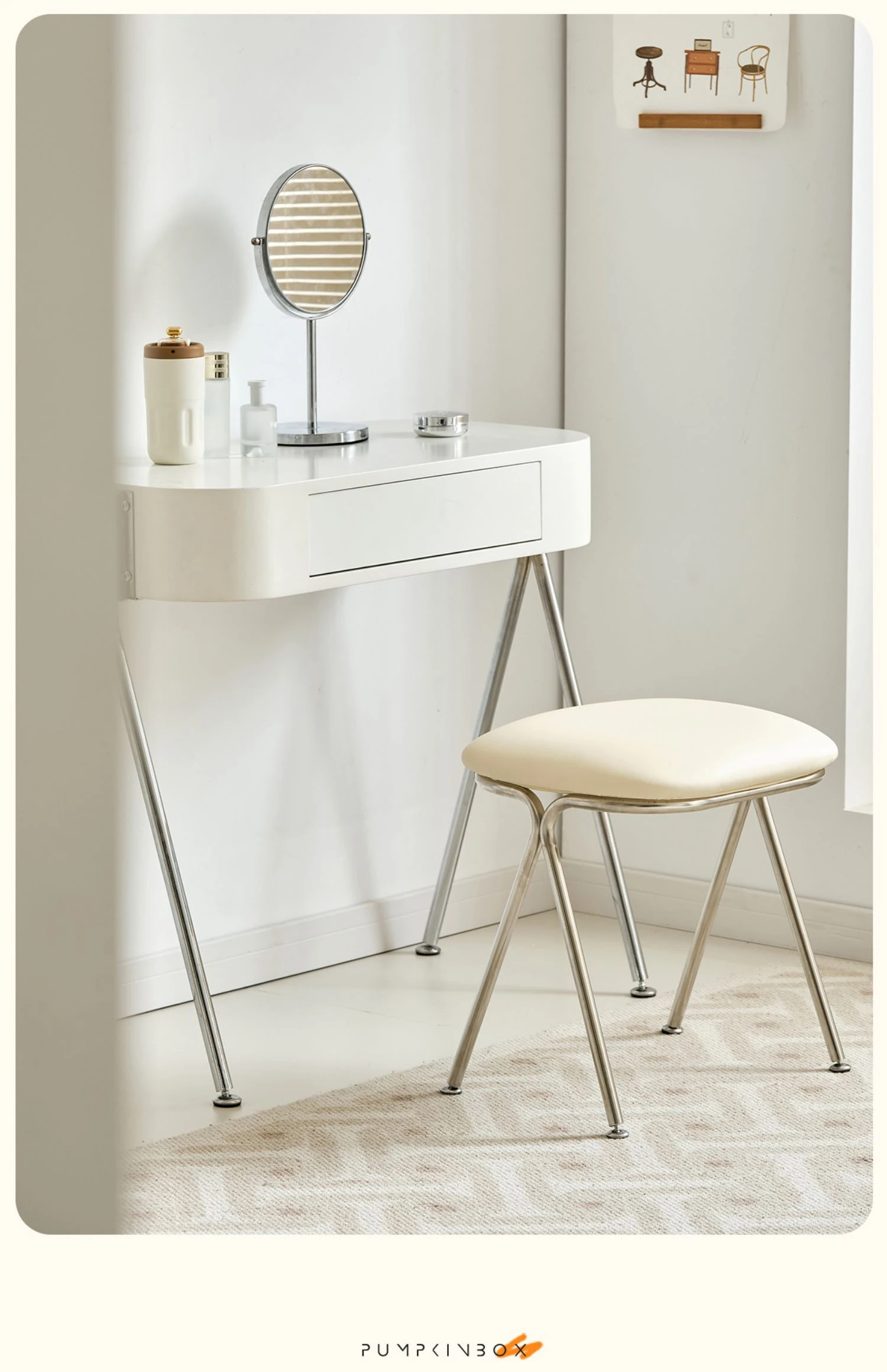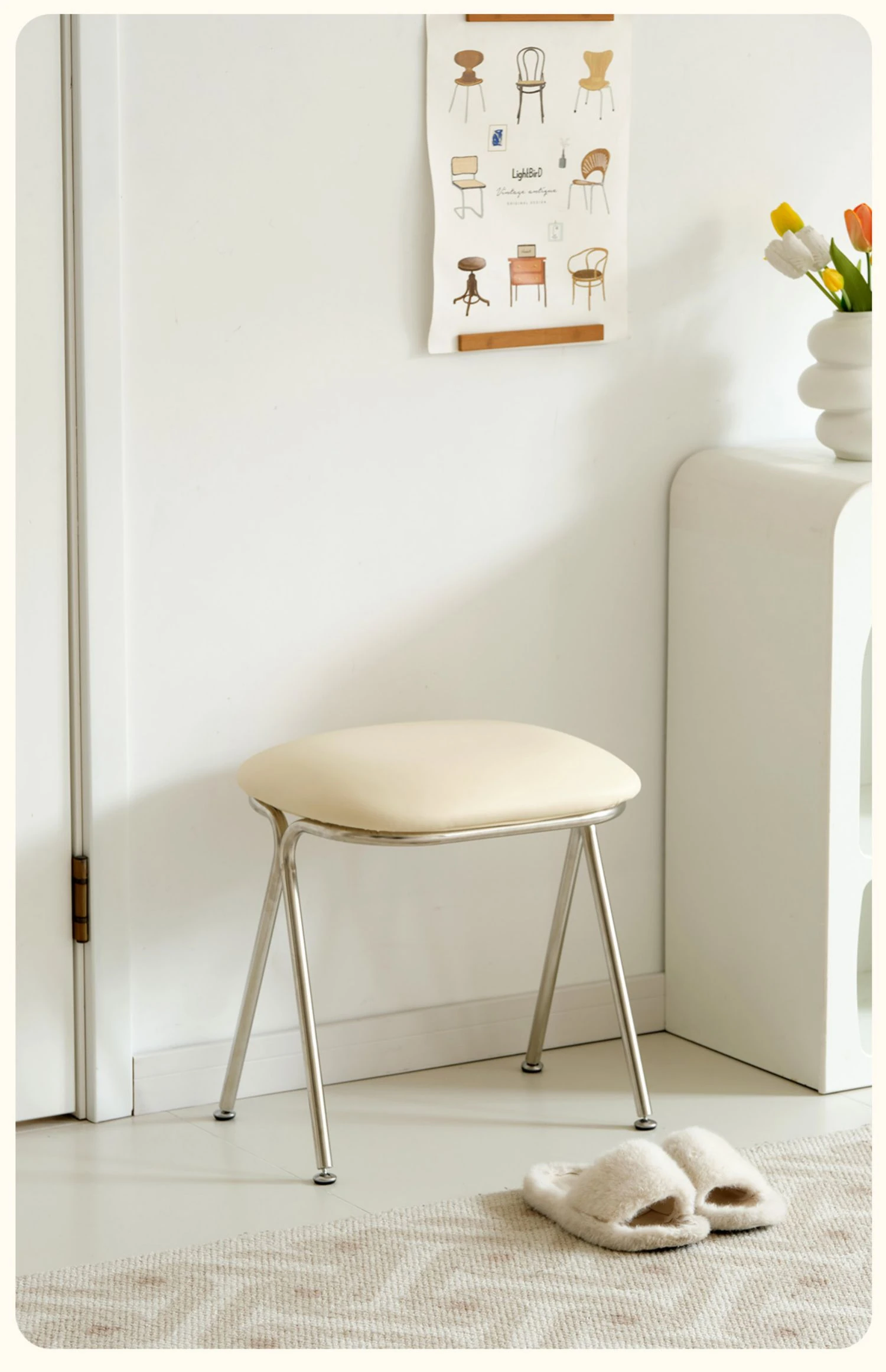 Scandinavian Minimalist Makeup Stool - Modern Chic Designer Chair for Bedroom Vanity, Stylish Soft-Padded Seat, Perfect for Influencers and Trendsetters