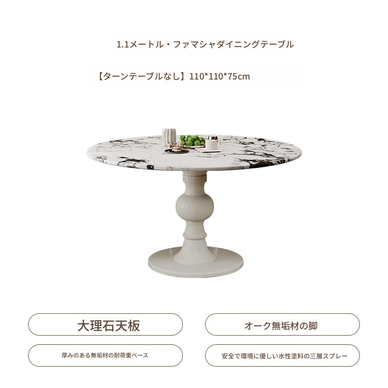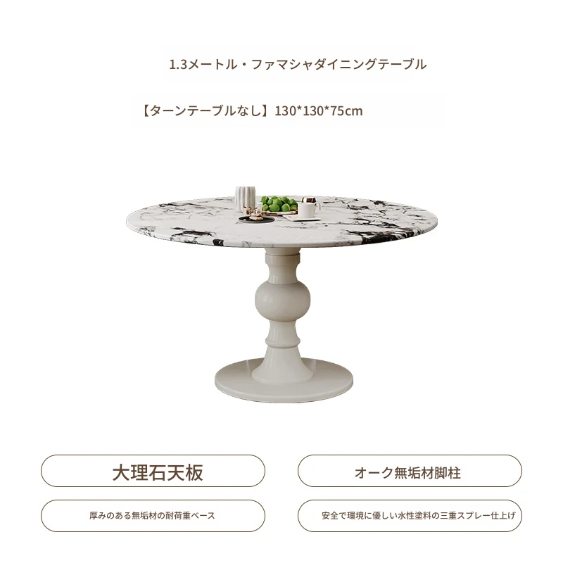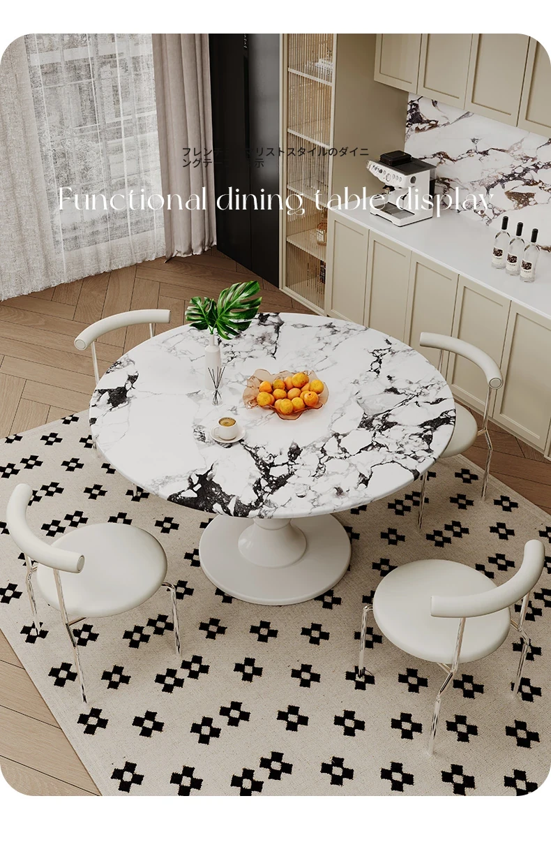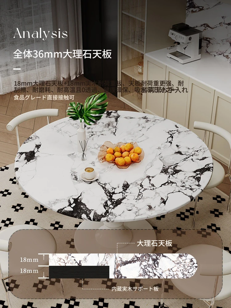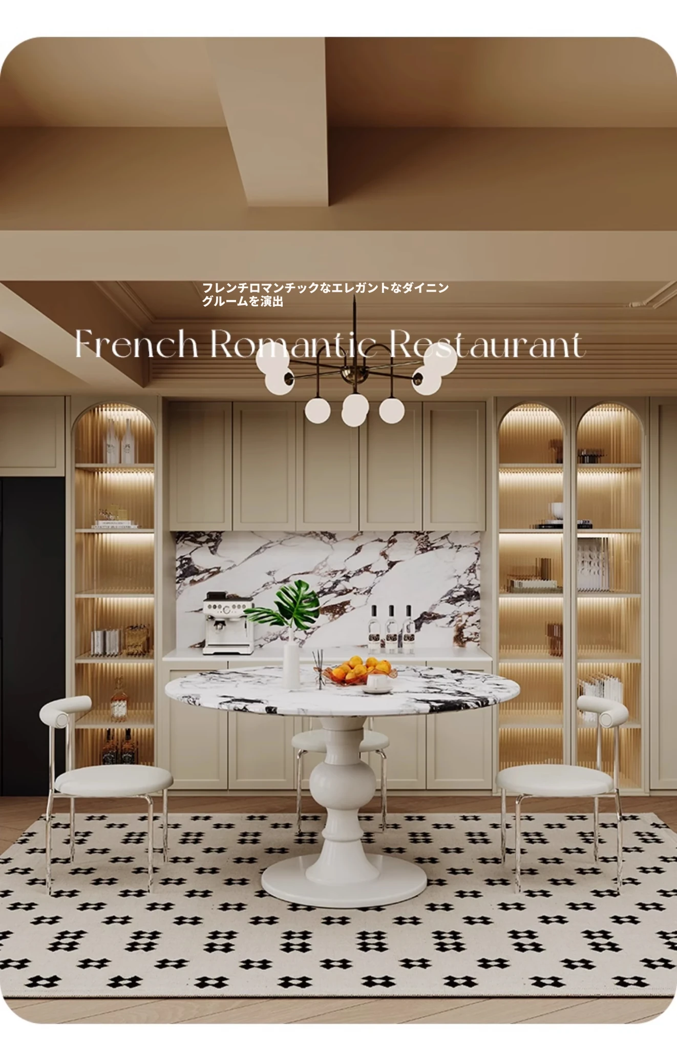 2025年新作!フランス風クリーム仕立ての丸型ボッテガ・ヴェネタ大理石ダイニングテーブル。小さなお部屋にもぴったりな実木ホワイトラウンドテーブルで、洗練された空間を演出!