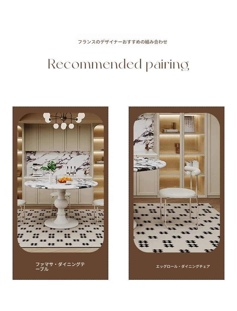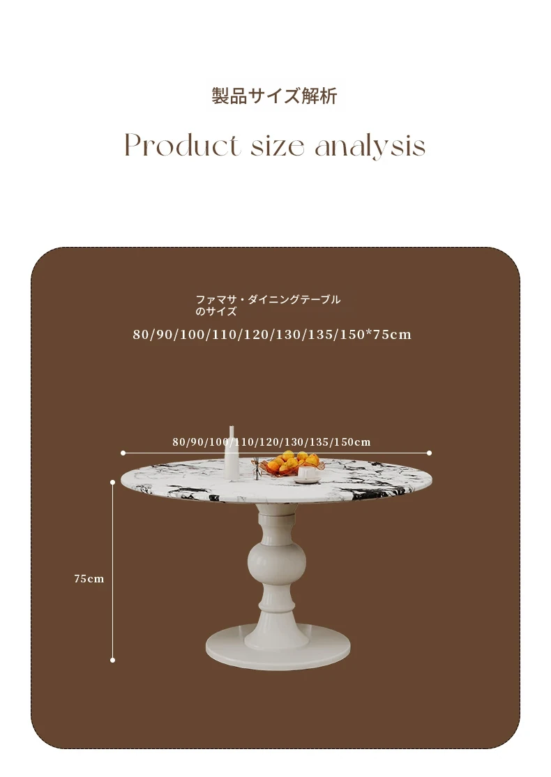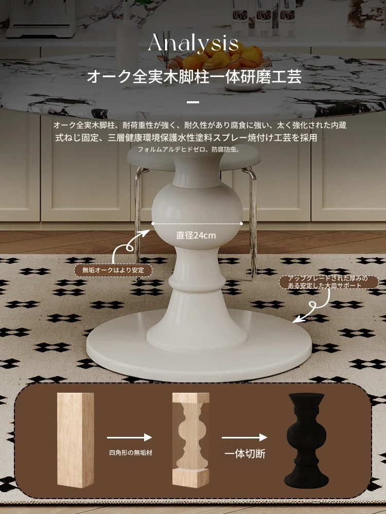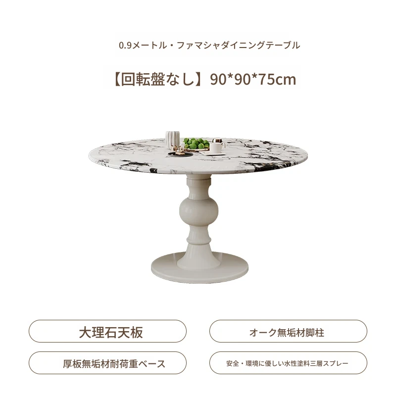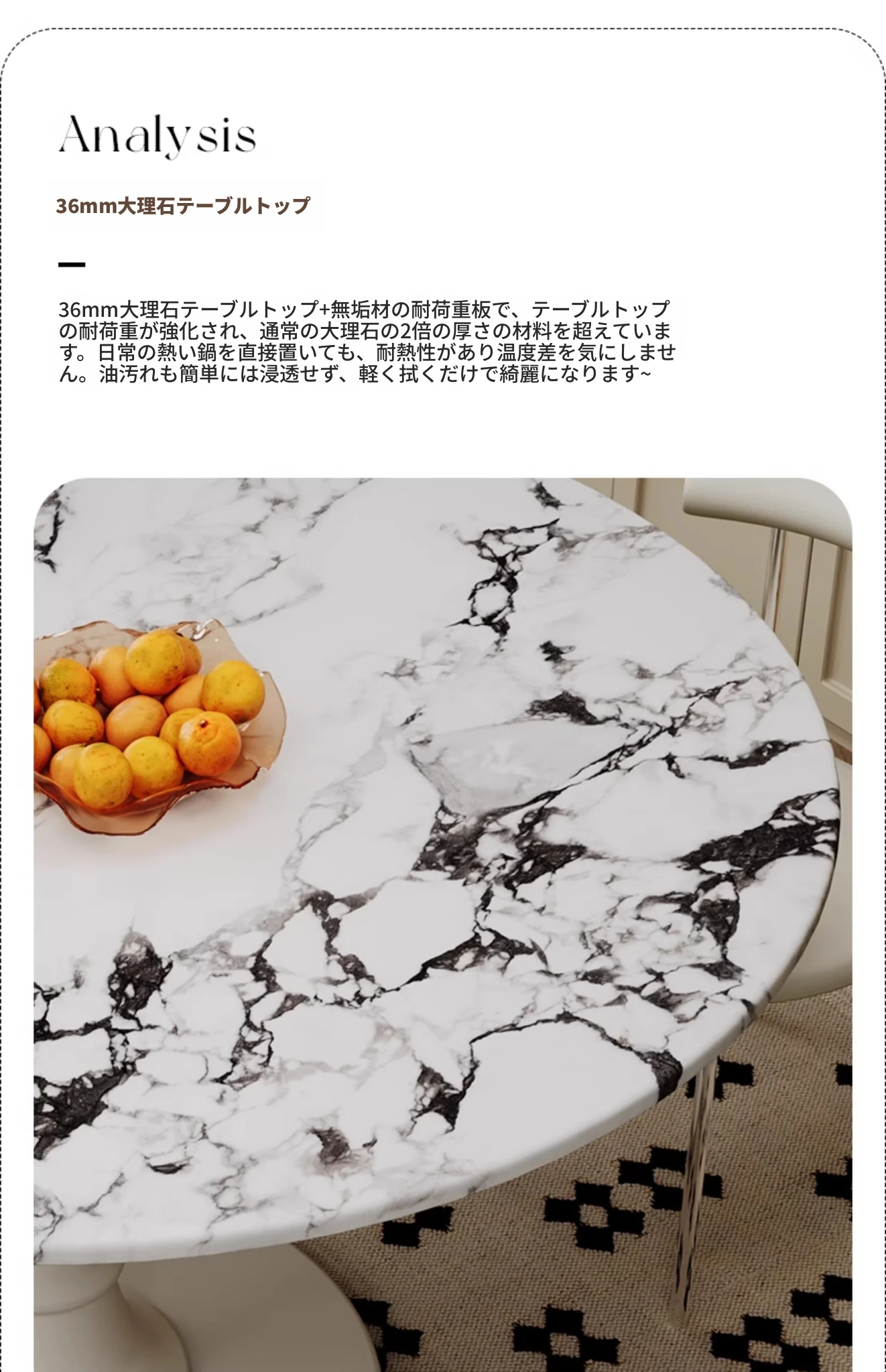 2025年新作!フランス風クリーム仕立ての丸型ボッテガ・ヴェネタ大理石ダイニングテーブル。小さなお部屋にもぴったりな実木ホワイトラウンドテーブルで、洗練された空間を演出!