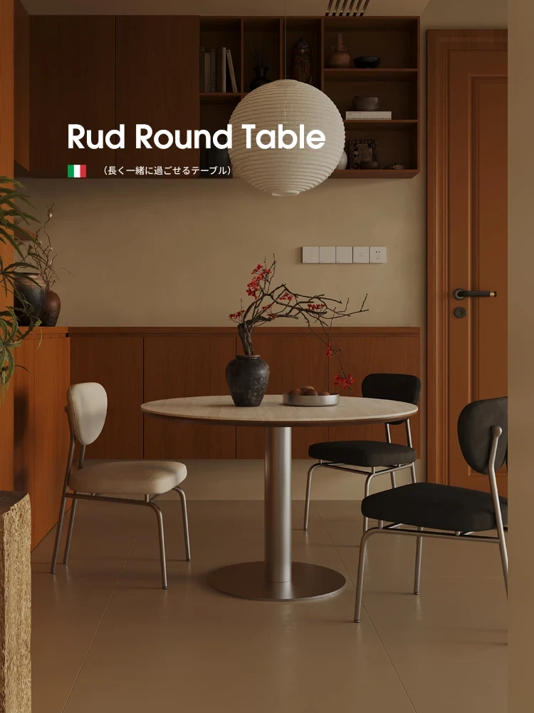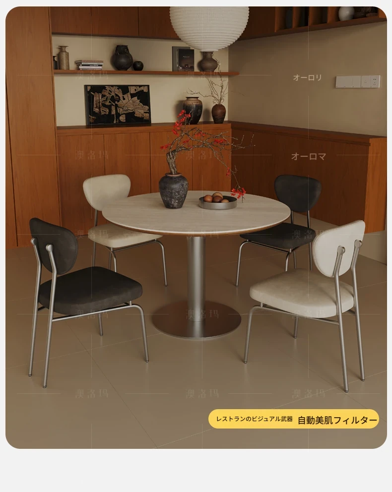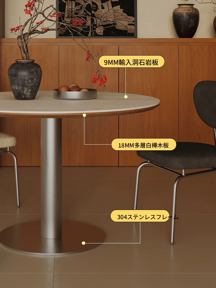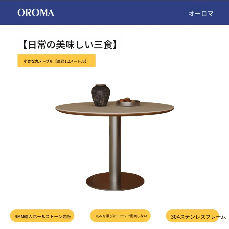 小円卓【1.2メートル直径】洞石岩板+304ステンレス鋼