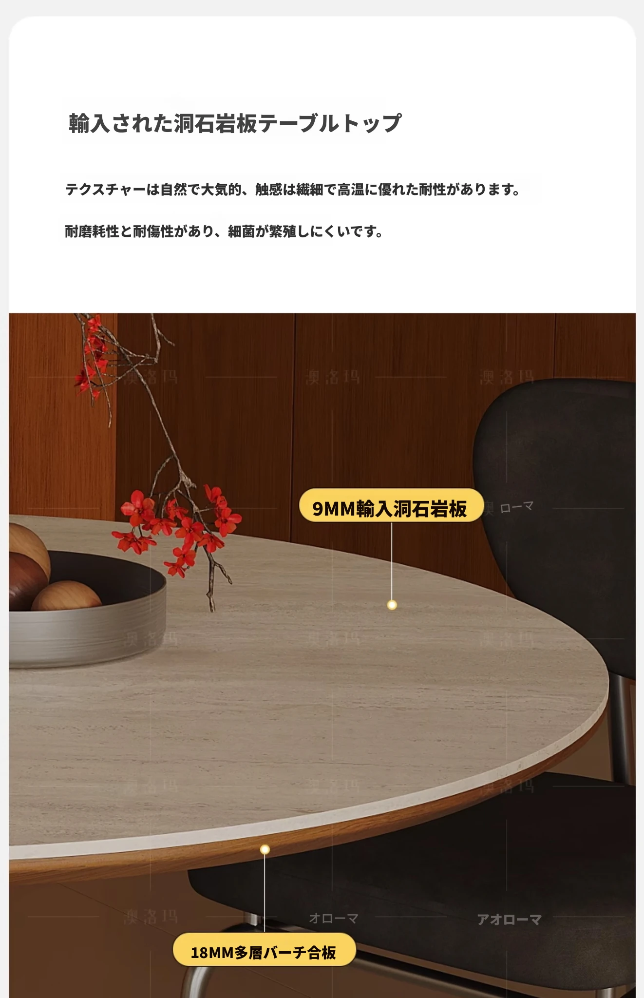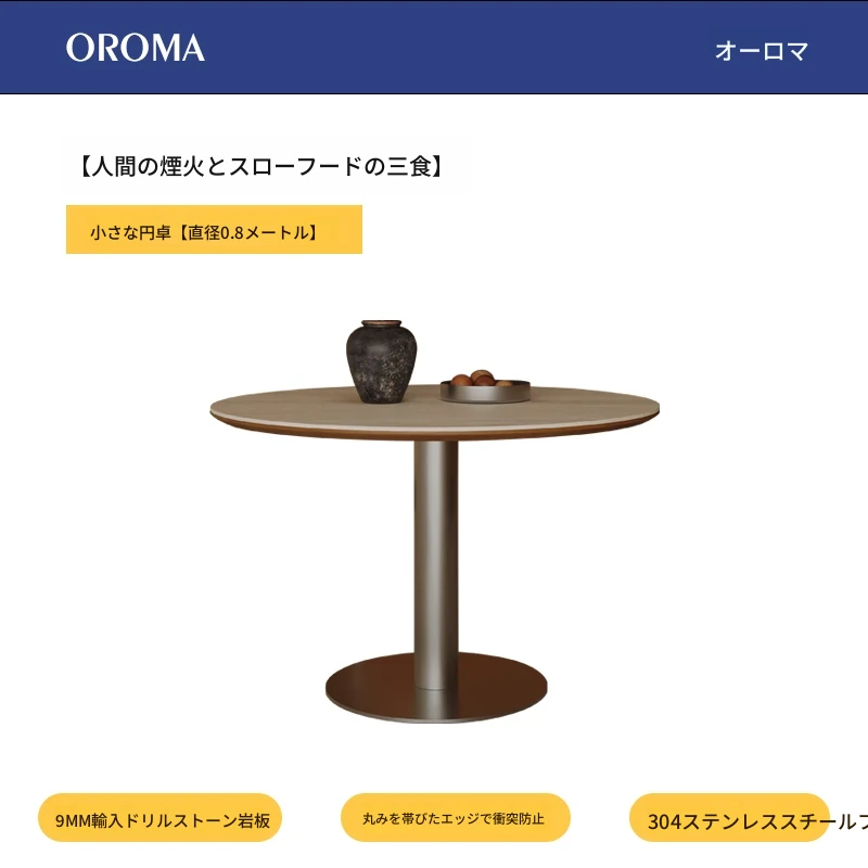 アウロマ|ヴィンテージ風の洞石デザイン、小型丸テーブル 家庭用コンパクトサイズ 食卓やダイニングにぴったり!デザイナーズテーブルでおしゃれな空間を演出。