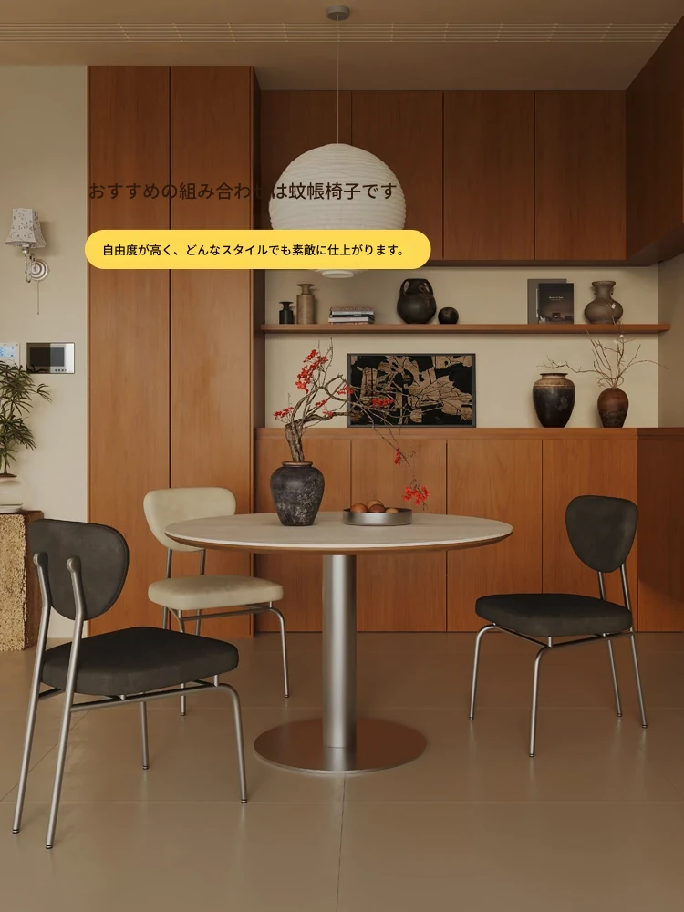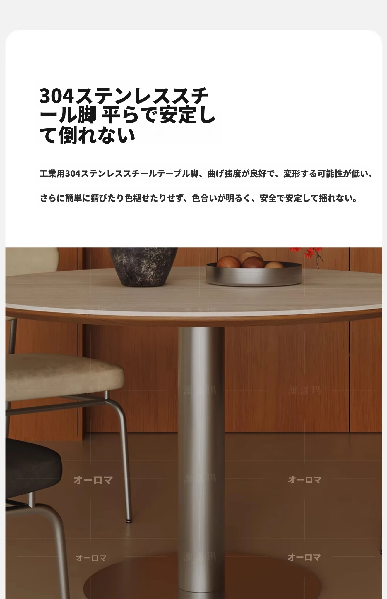 小円卓【0.8メートル直径】洞石岩板+304ステンレス鋼