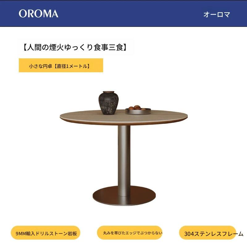 小円卓【1.1メートル直径】洞石岩板+304ステンレス鋼