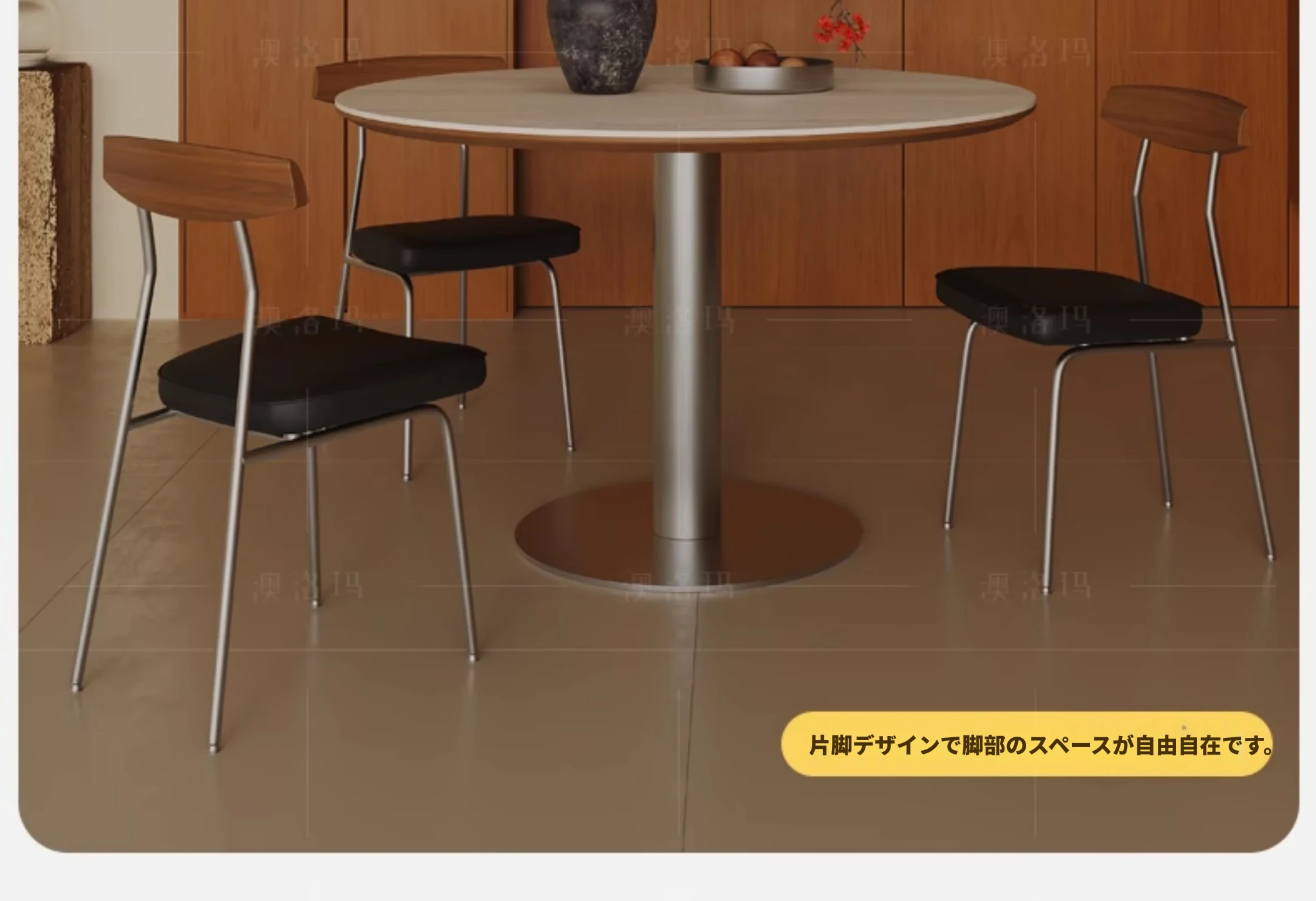 小円卓【0.9メートル直径】洞石岩板+304ステンレス鋼