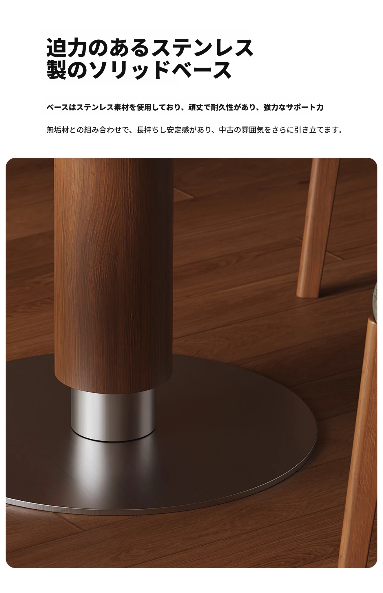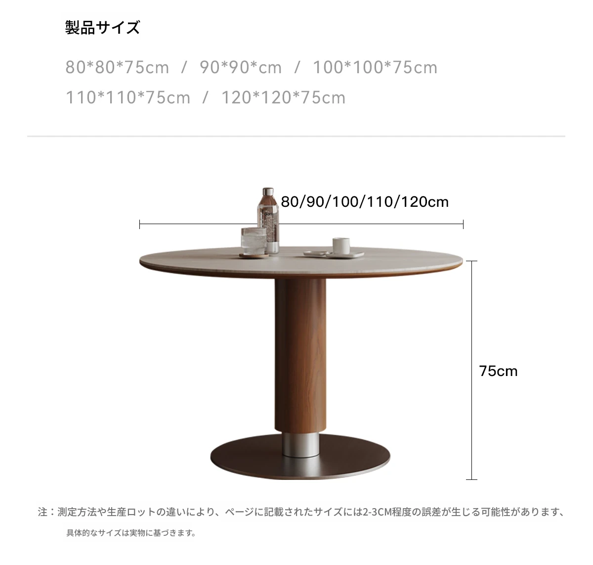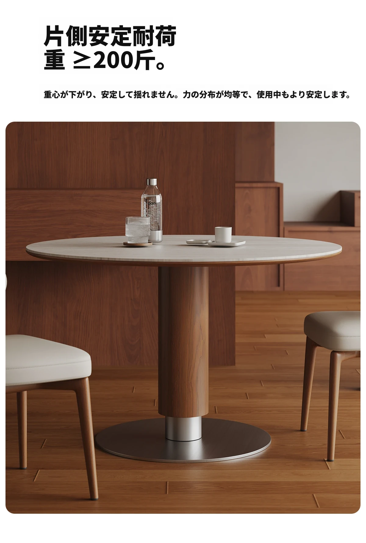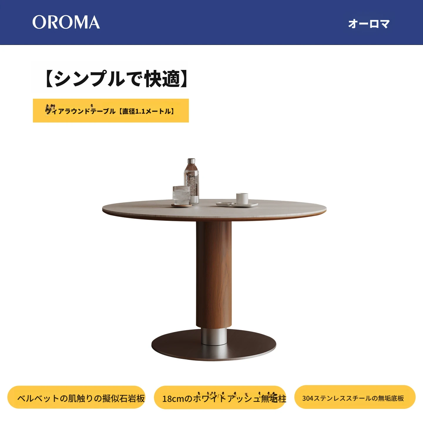 ヴィアラウンドテーブル【直径1.1m】洞石岩板+304ソリッドステンレス