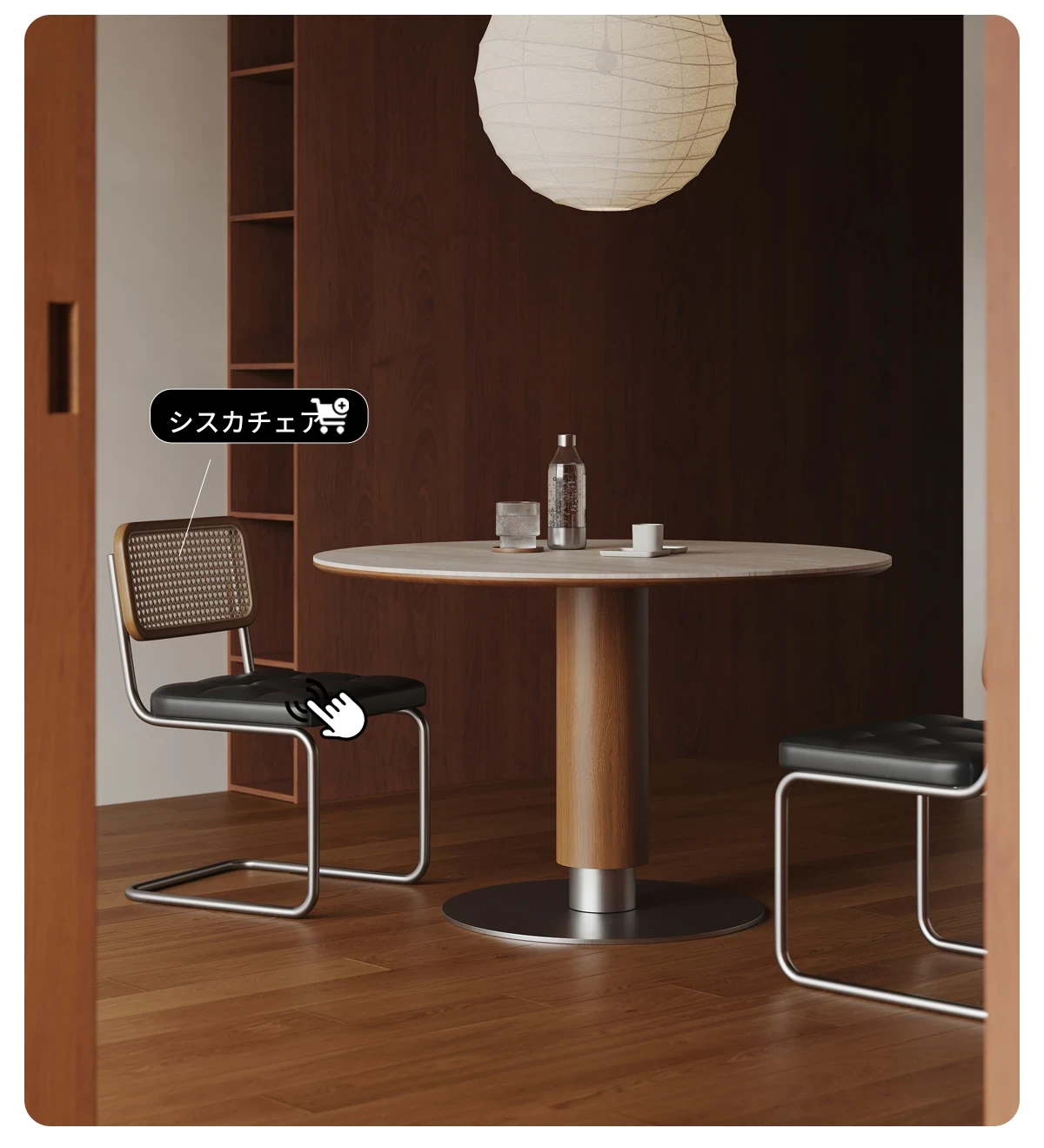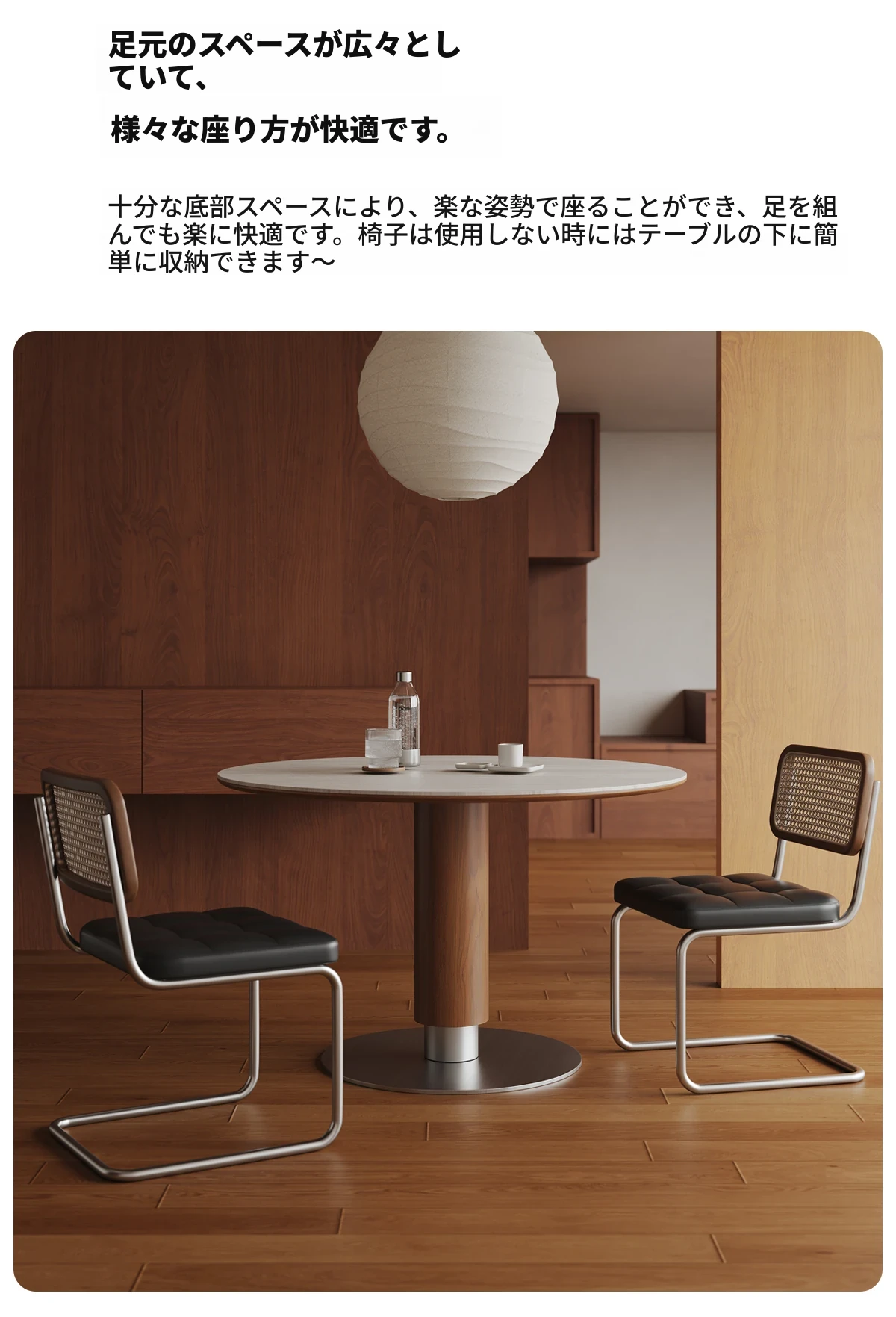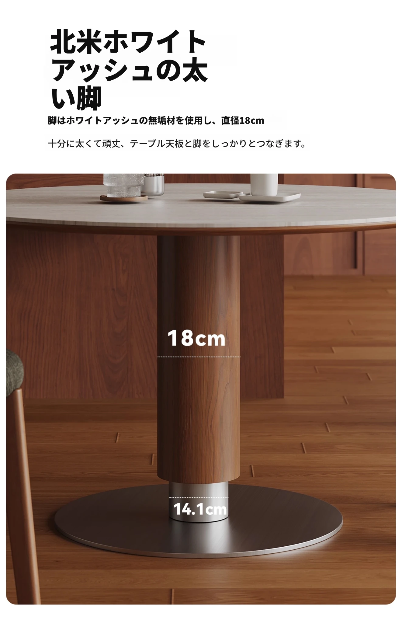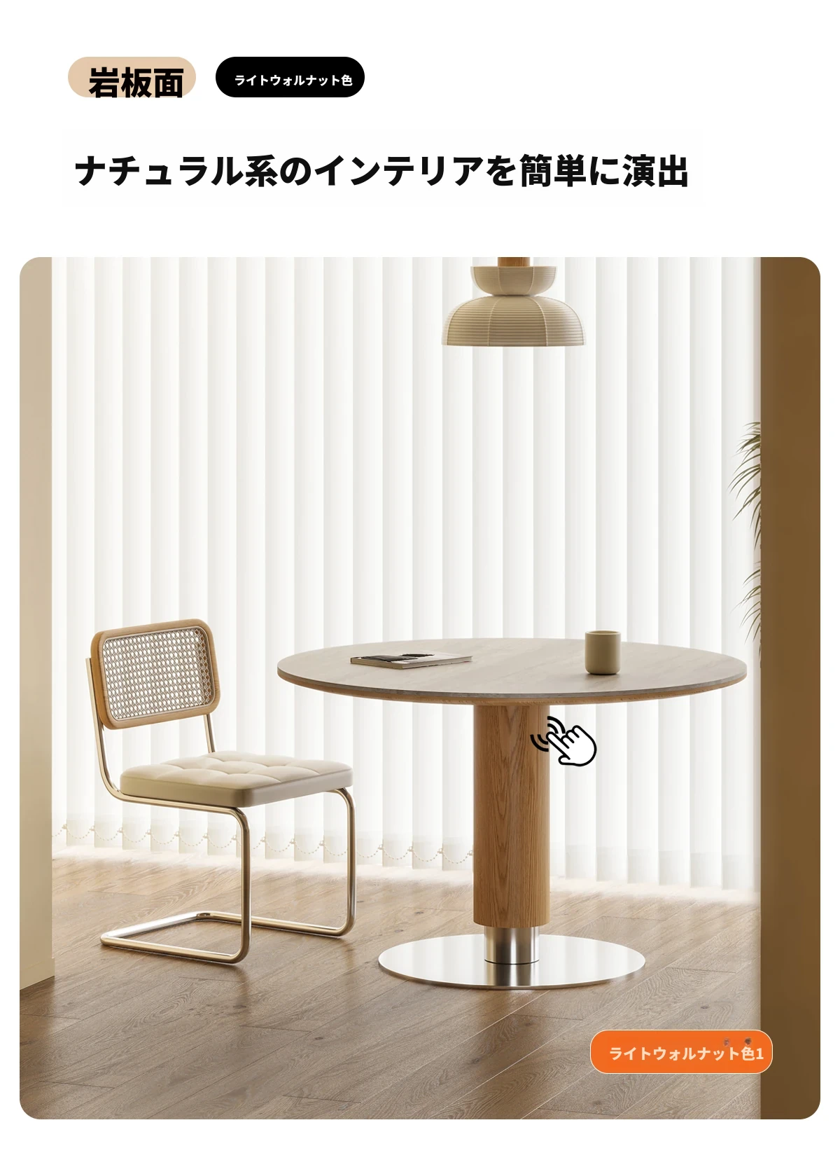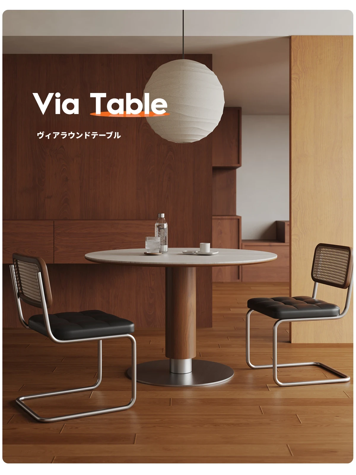 ヴィアラウンドテーブル【直径1.1m】洞石岩板+304ソリッドステンレス