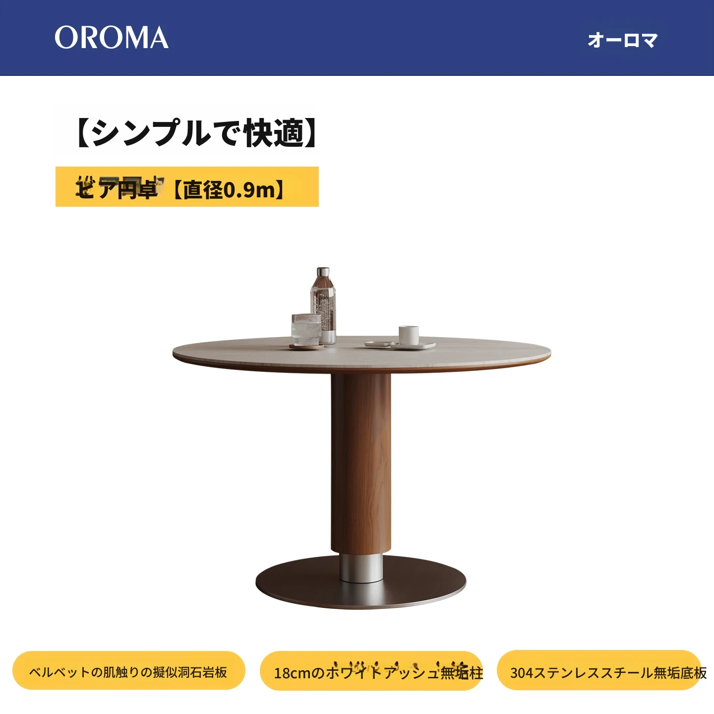 ヴィアラウンドテーブル【直径0.9m】洞石岩板+304ソリッドステンレス