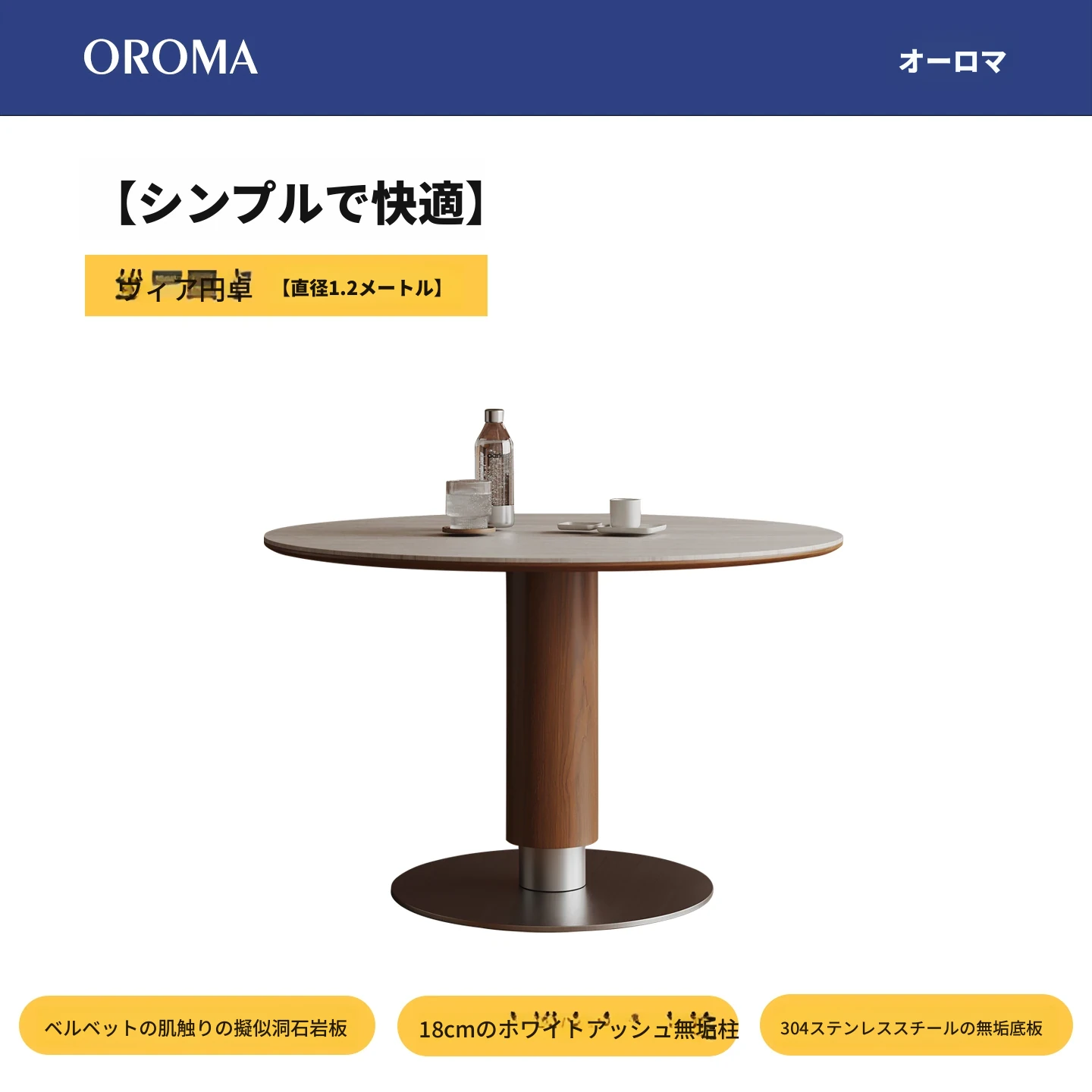 ヴィアラウンドテーブル【直径1.2m】洞石岩板+304ソリッドステンレス