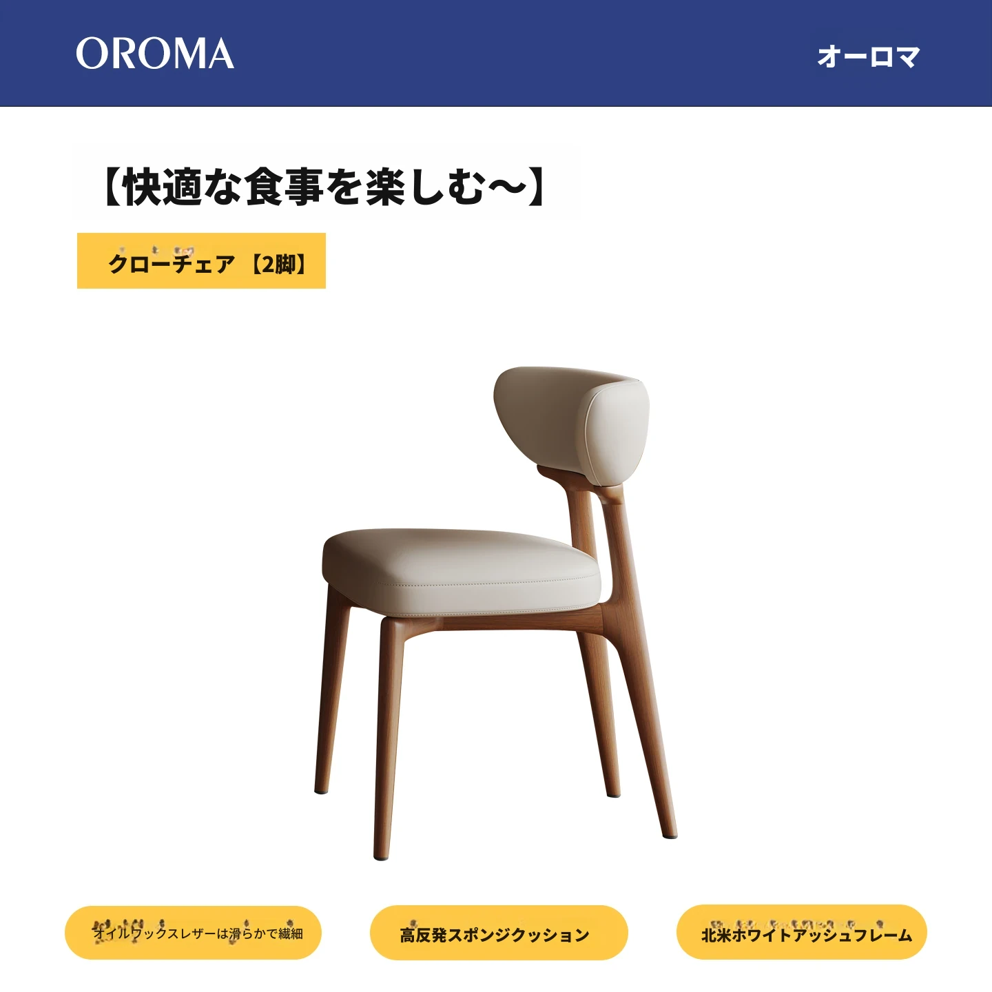 クローチェア【2脚】オイルワックスレザー+ホワイトアッシュ