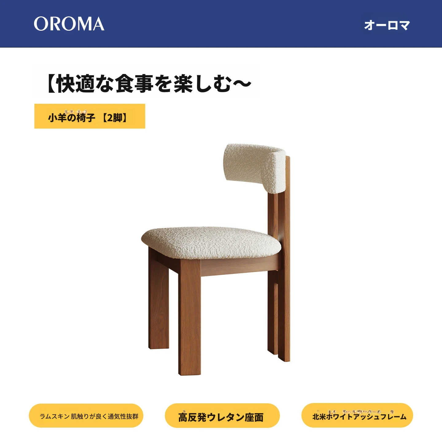 ラムチェア【2脚】ラムファー+ホワイトアッシュ