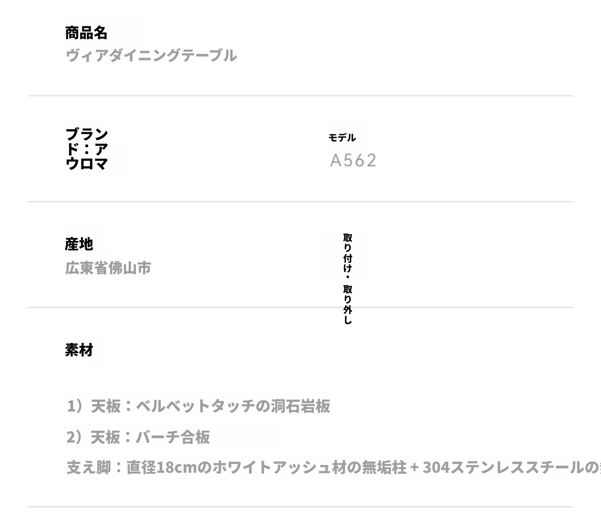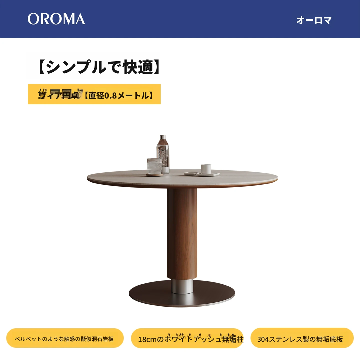 ヴィアラウンドテーブル【直径0.8m】洞石岩板+304ソリッドステンレス