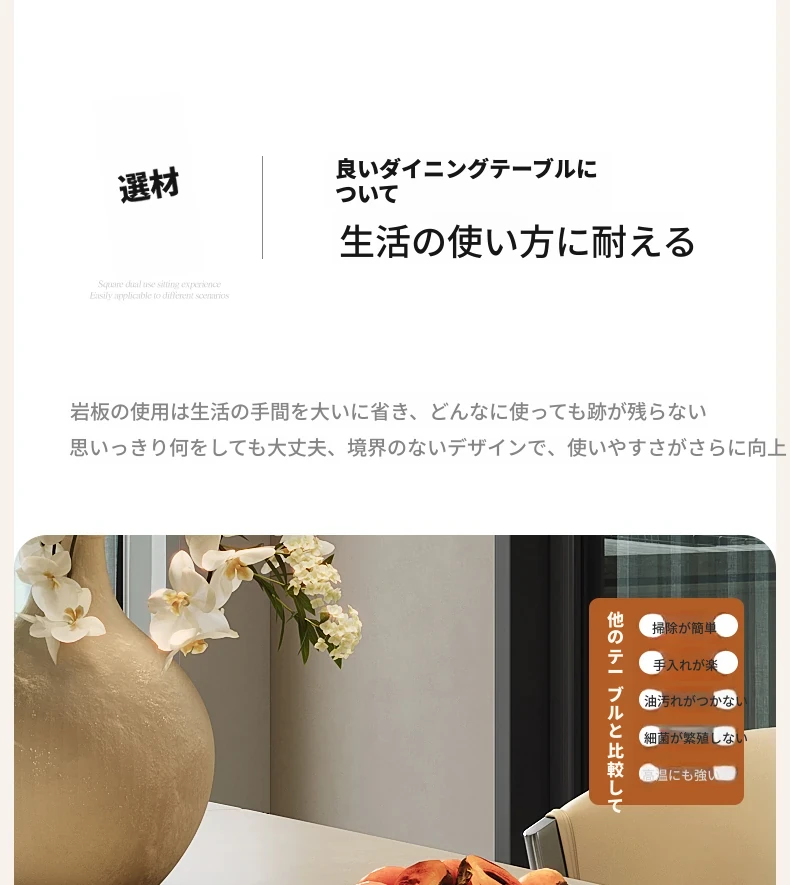 ダイニングテーブル(輸入藏翔米色複合岩板)