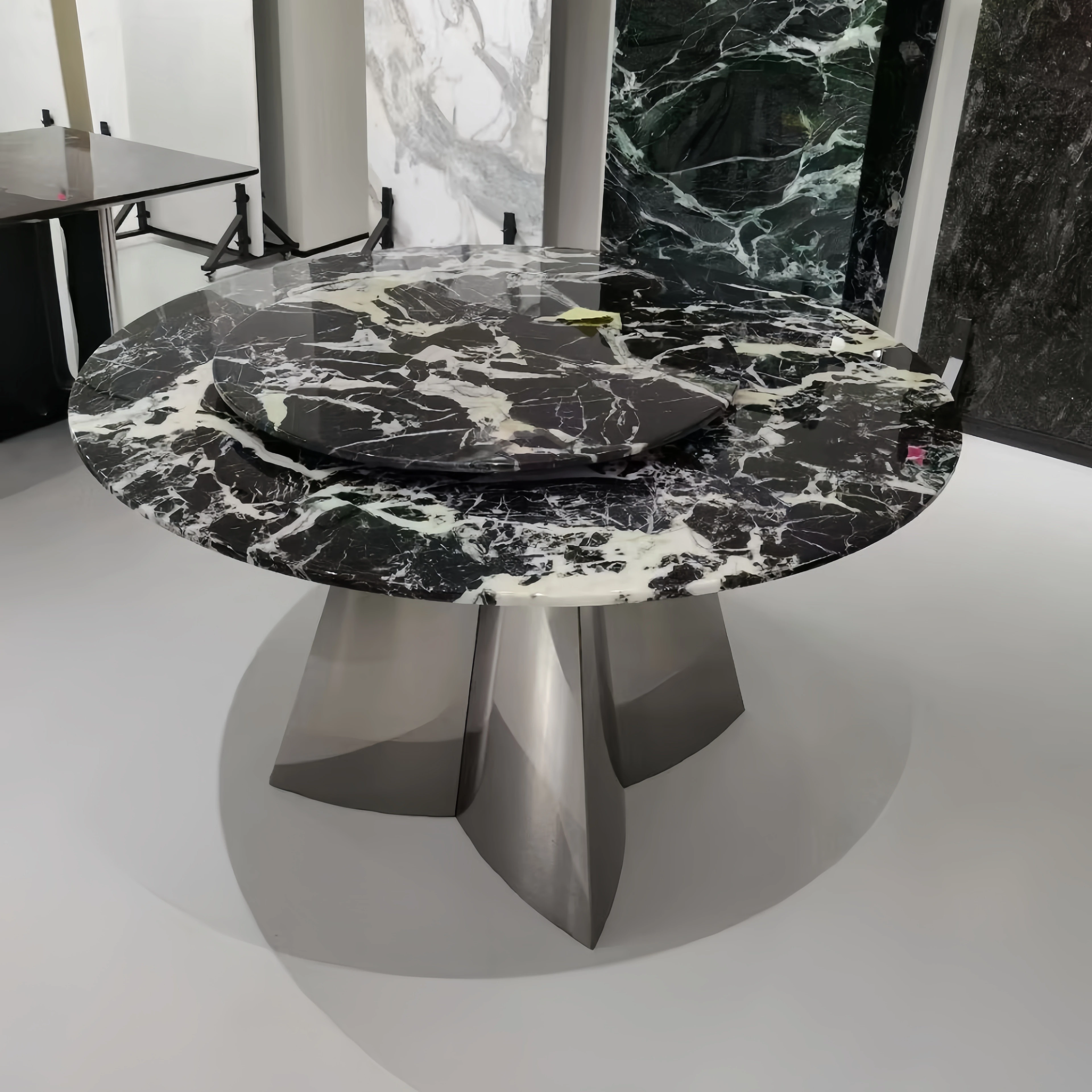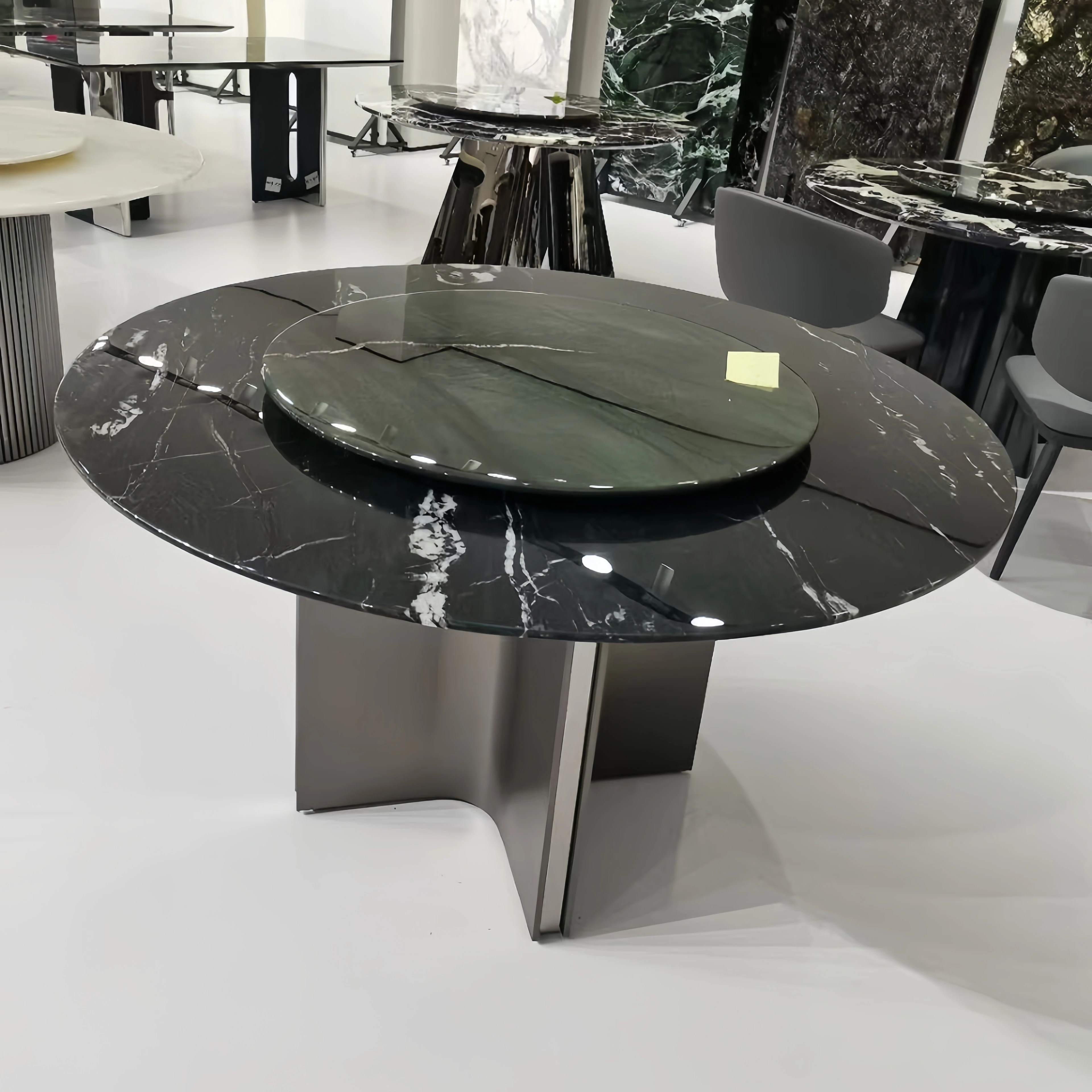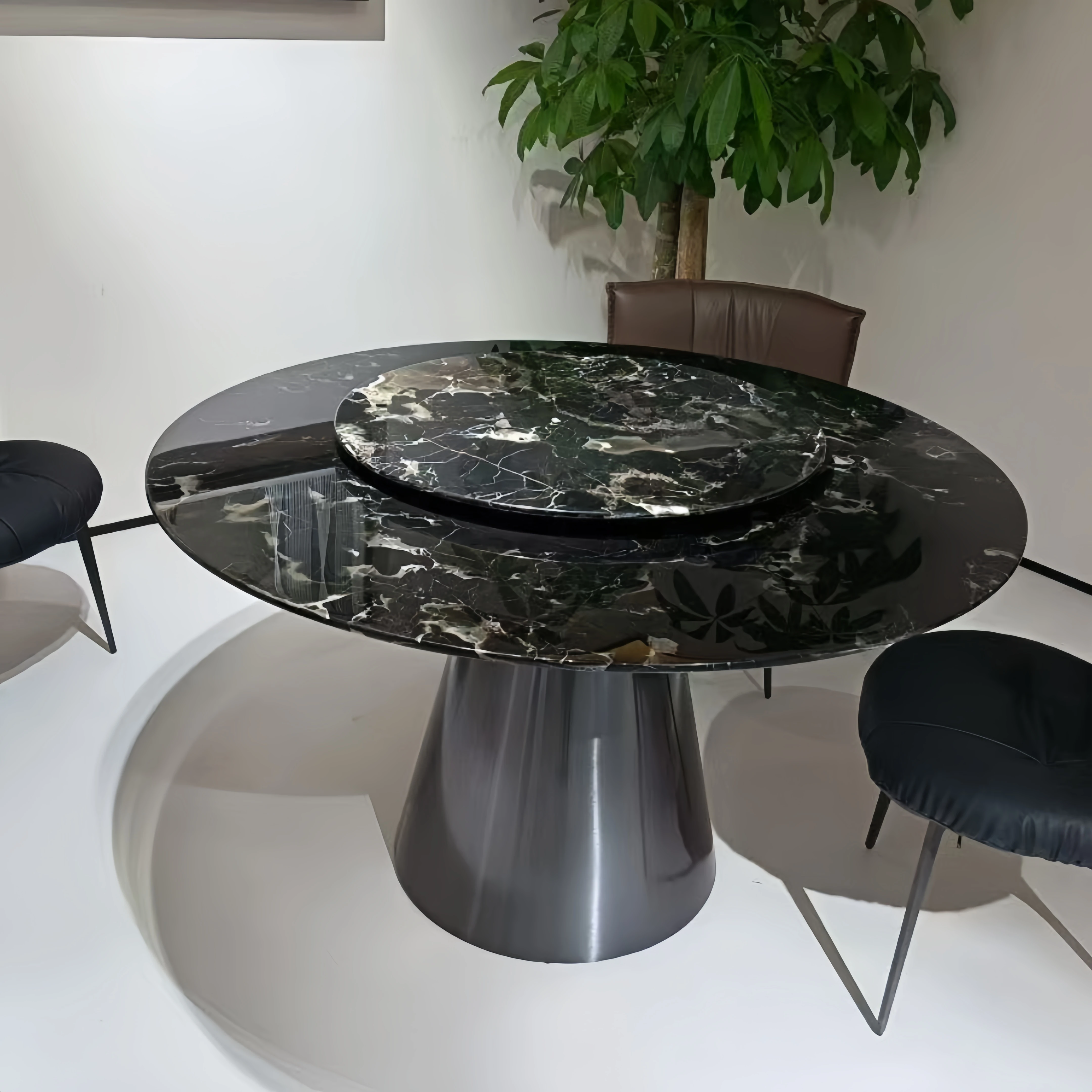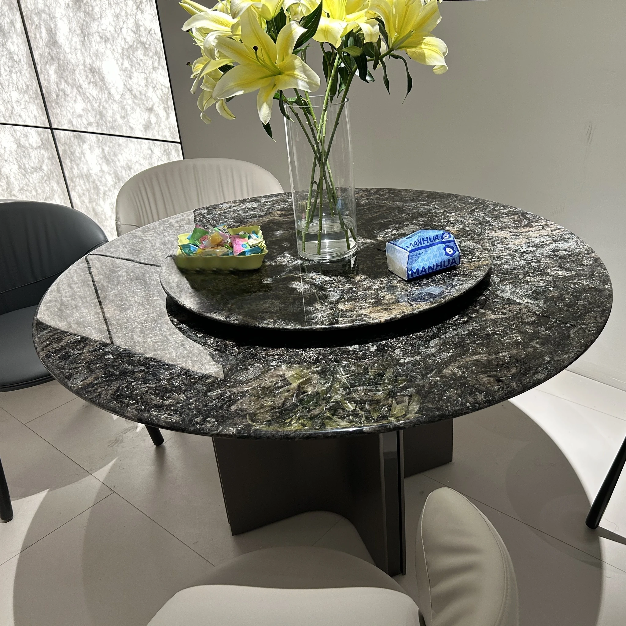 CZ109純天然大理石ラウンドダイニングテーブル1.35m - 豪華なブラックローズ・ボッテガ・ブラック・ドリーム・ギャラクシーで、洗練された空間を演出します。