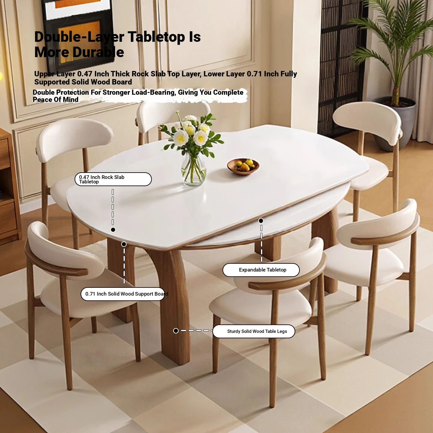 伸縮岩板ダイニングテーブル
