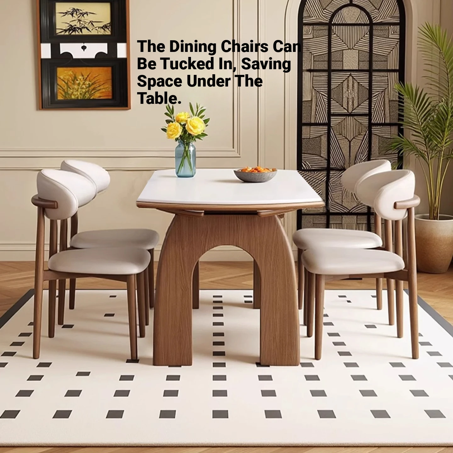 伸縮岩板ダイニングテーブル+人魚椅子*4