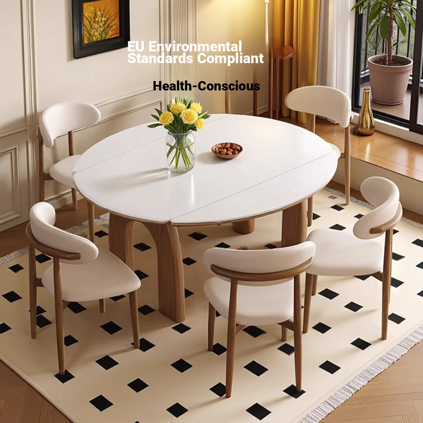 伸縮岩板ダイニングテーブル+羊角椅子*4