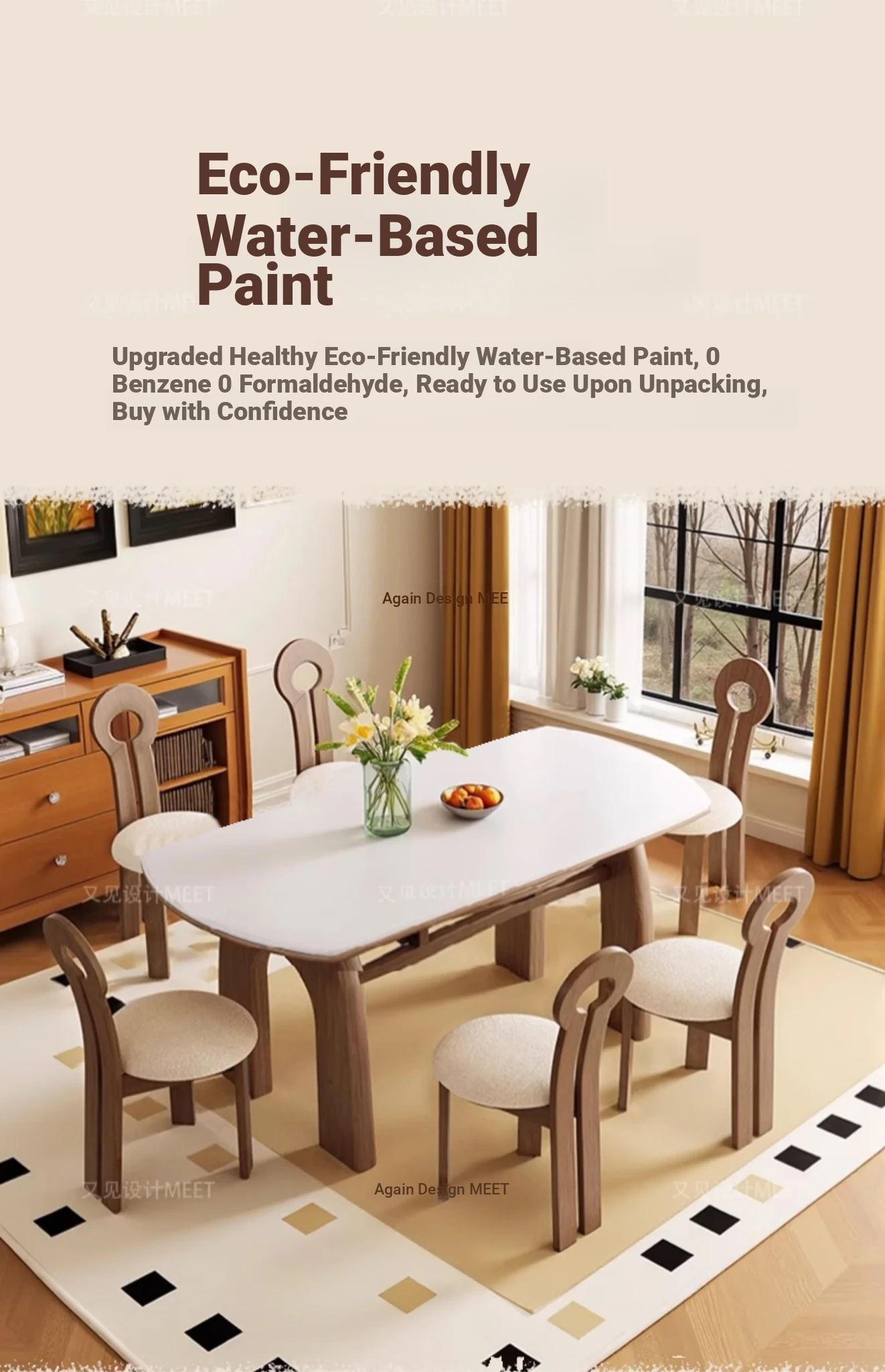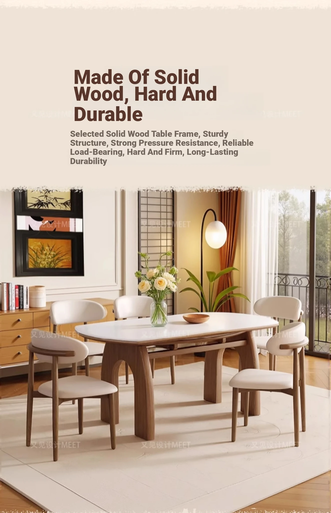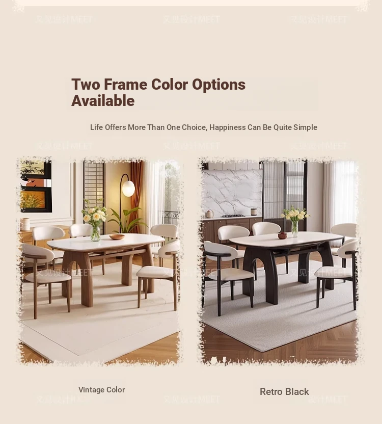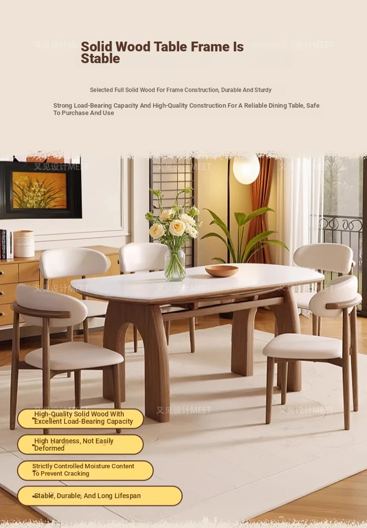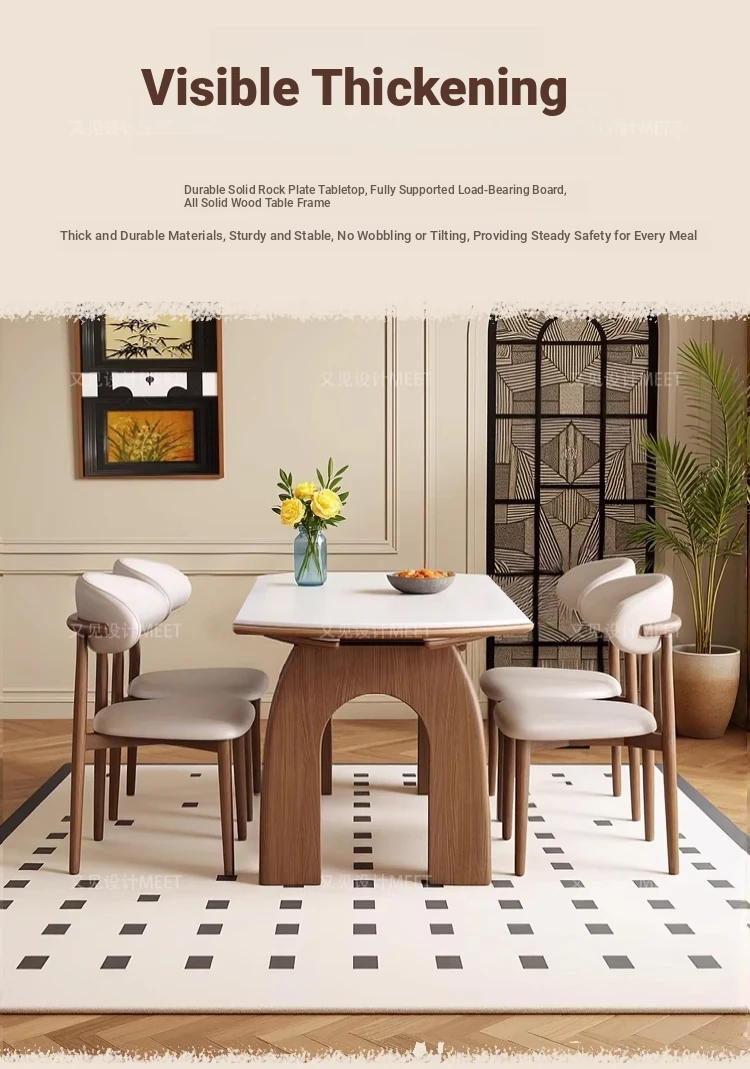 伸縮岩板ダイニングテーブル+羊角椅子*6
