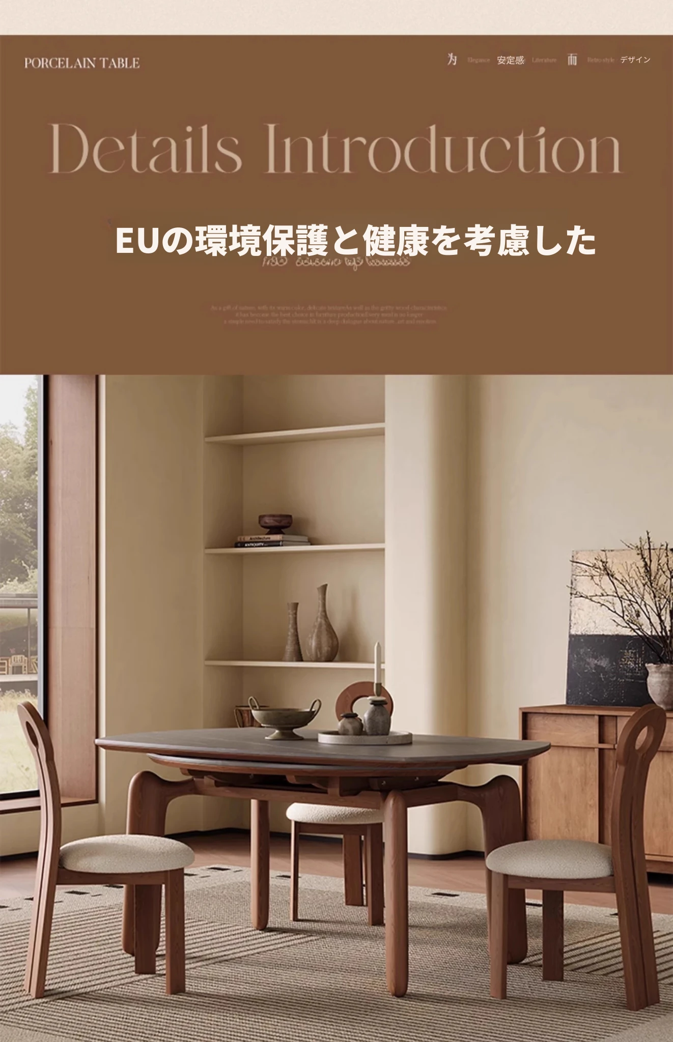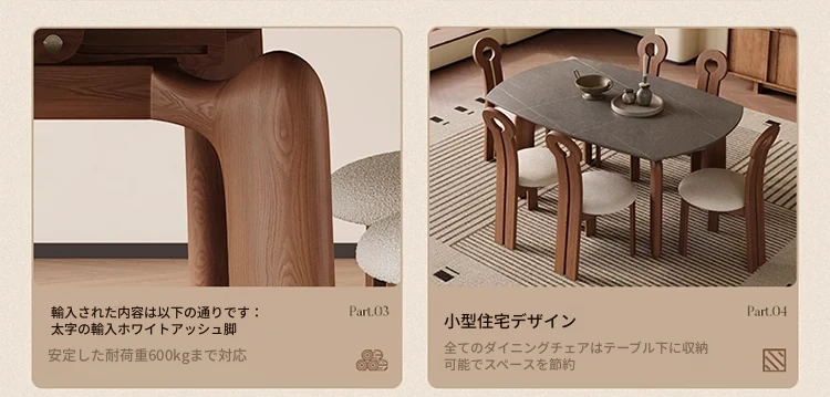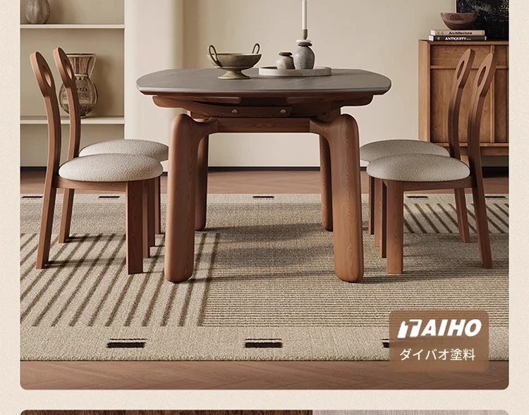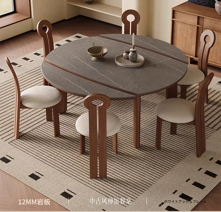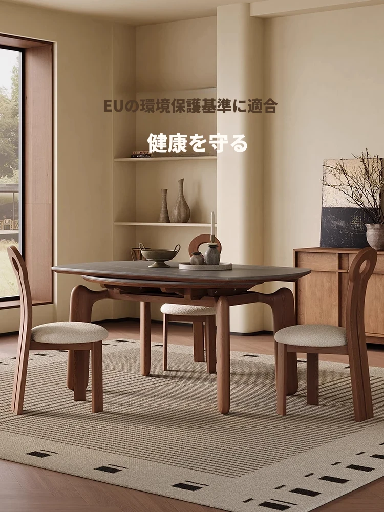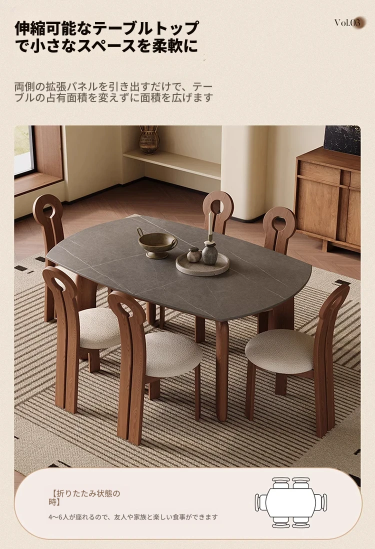 伸縮可能な実木岩板ダイニングテーブル|北欧風シンプルモダンデザイン|小型住宅に最適な折りたたみ式テーブルとチェアのコンビネーション|自然な木の色合いで温かみをプラス!