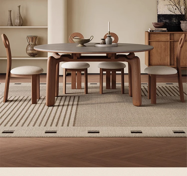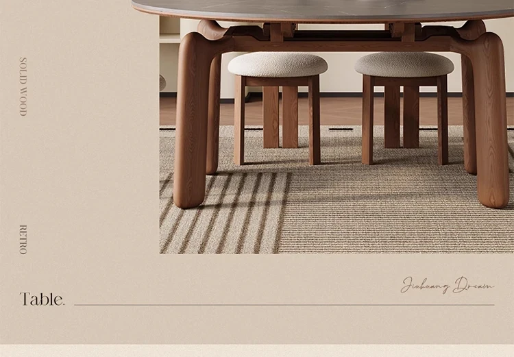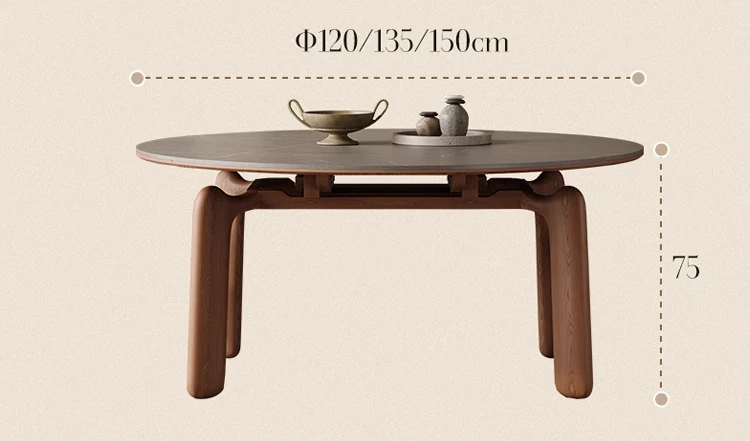 和風クリーム仕上げのドーム型石岩板を使用した1メートルの円形ダイニングテーブルセット。おしゃれでコンパクトなデザイン、木目の美しさを生かした天然素材で、小さな家でもぴったりの食卓に。